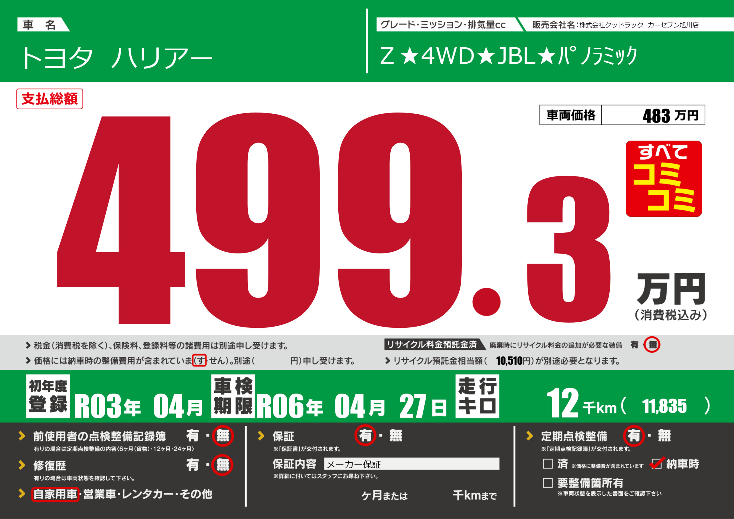 | 車検制限 | R06年 04月 27日 | ||
