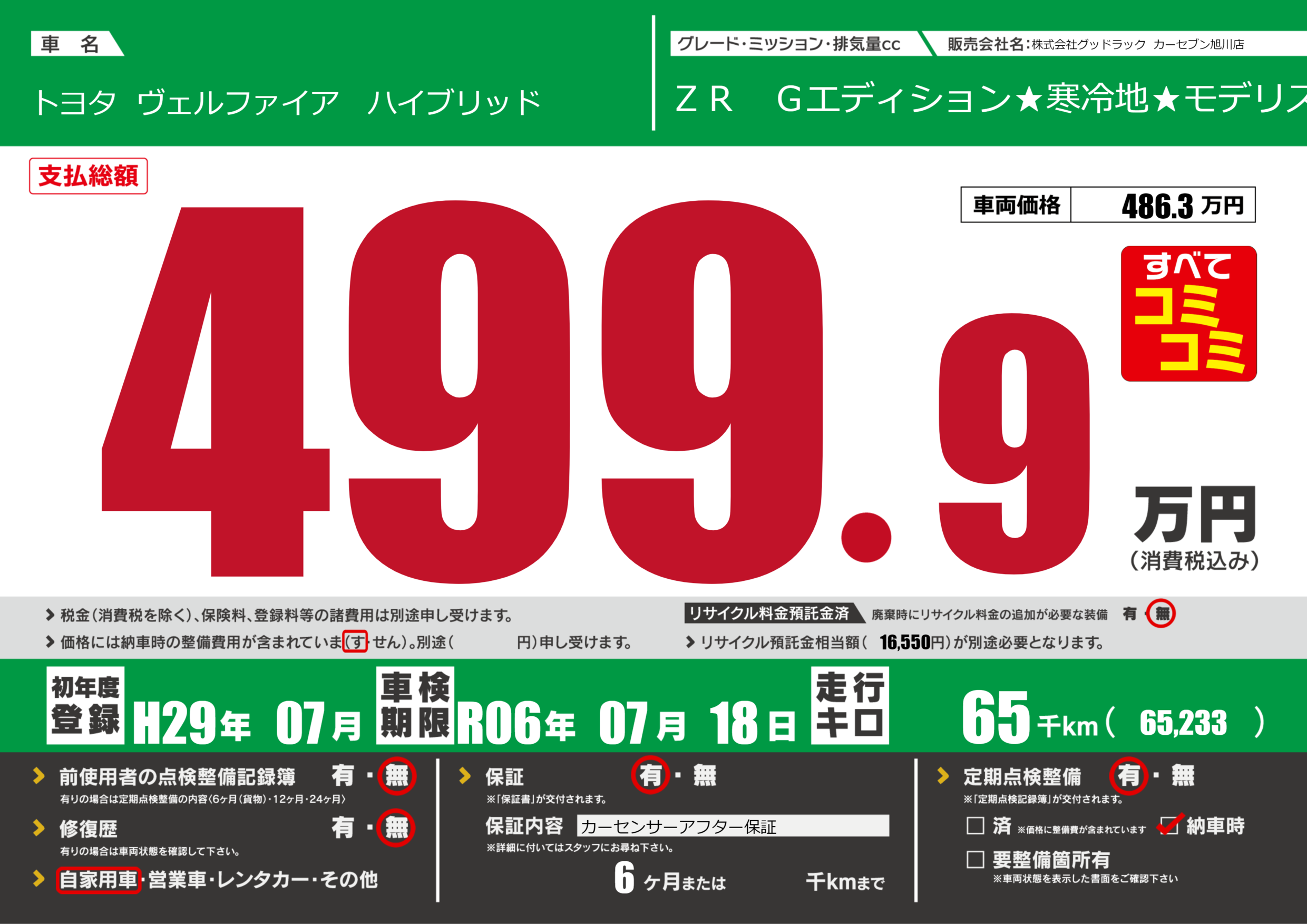 | 走行キロ | 6.5万km | 初年度登録 | H29年07月 |