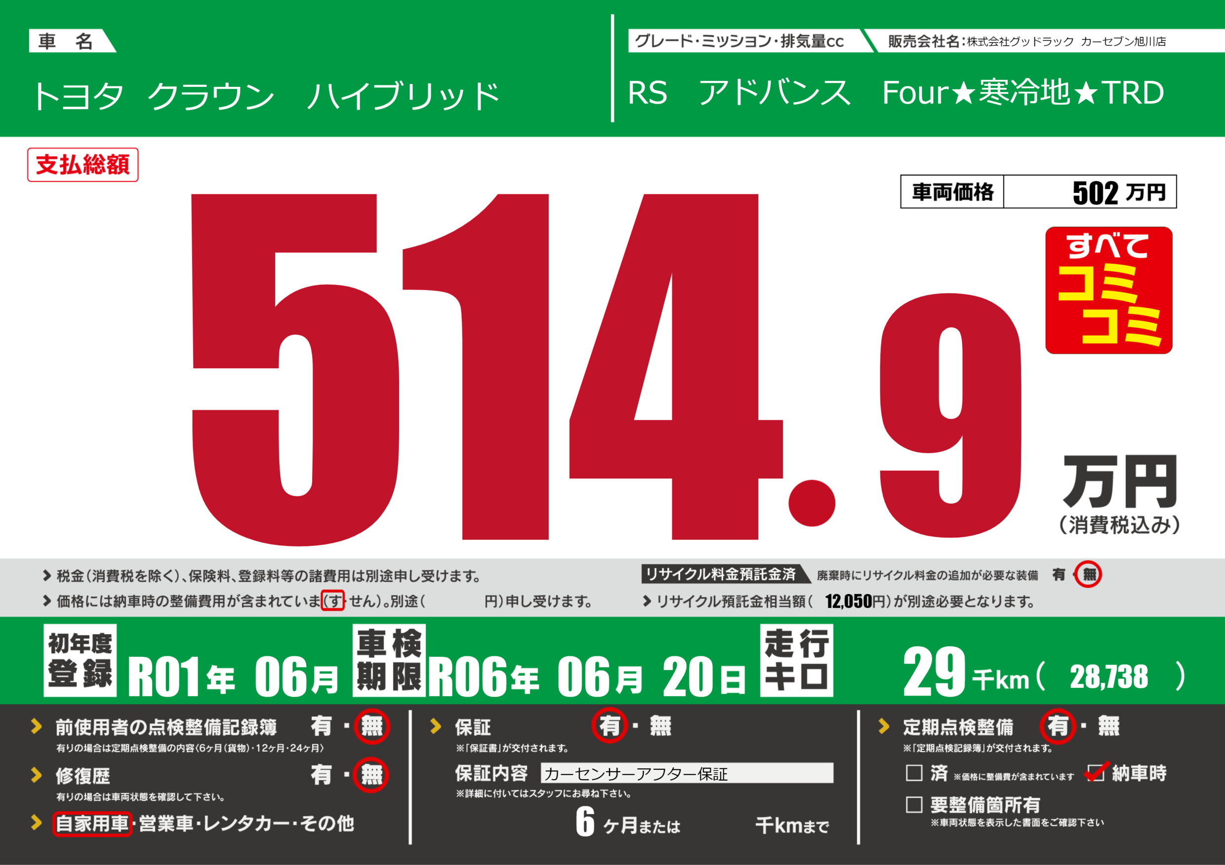 | 車名 | トヨタ クラウン ハイブリッド | グレード ミッション 排気量 |