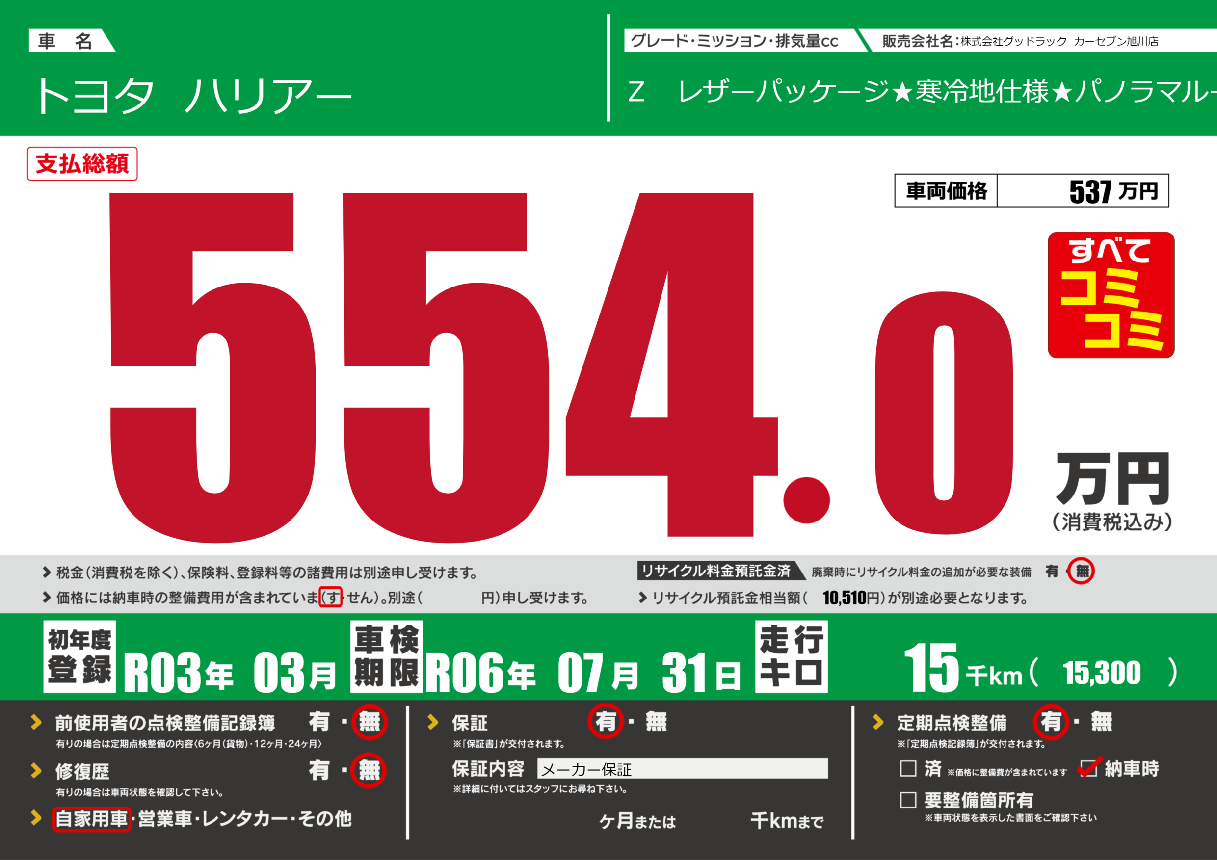 | 走行キロ | 1.5万km | 初年度登録 | R03年03月 |
