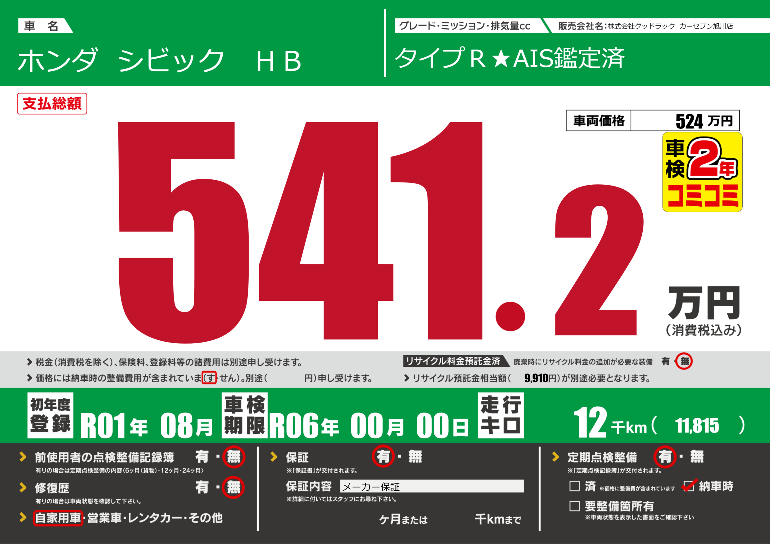 | 車検制限 | R06年 00月 00日 | ||