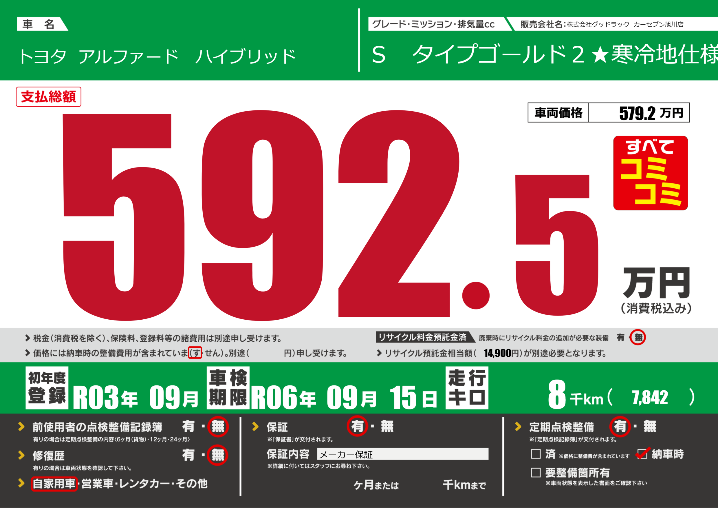 あり | 車検制限 | R06年09月15月 |