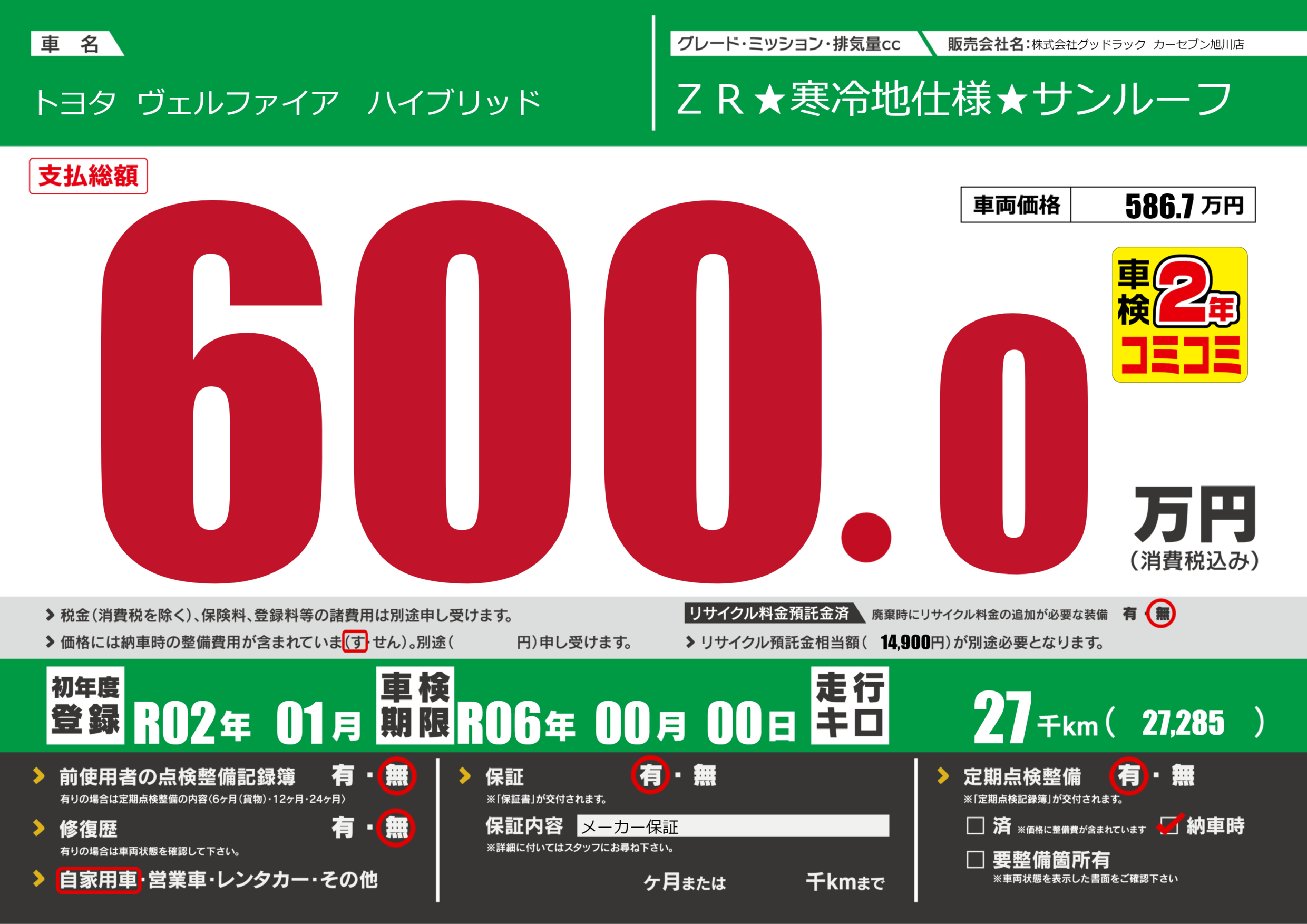 | 車検制限 | R06年 00月 00日 | ||