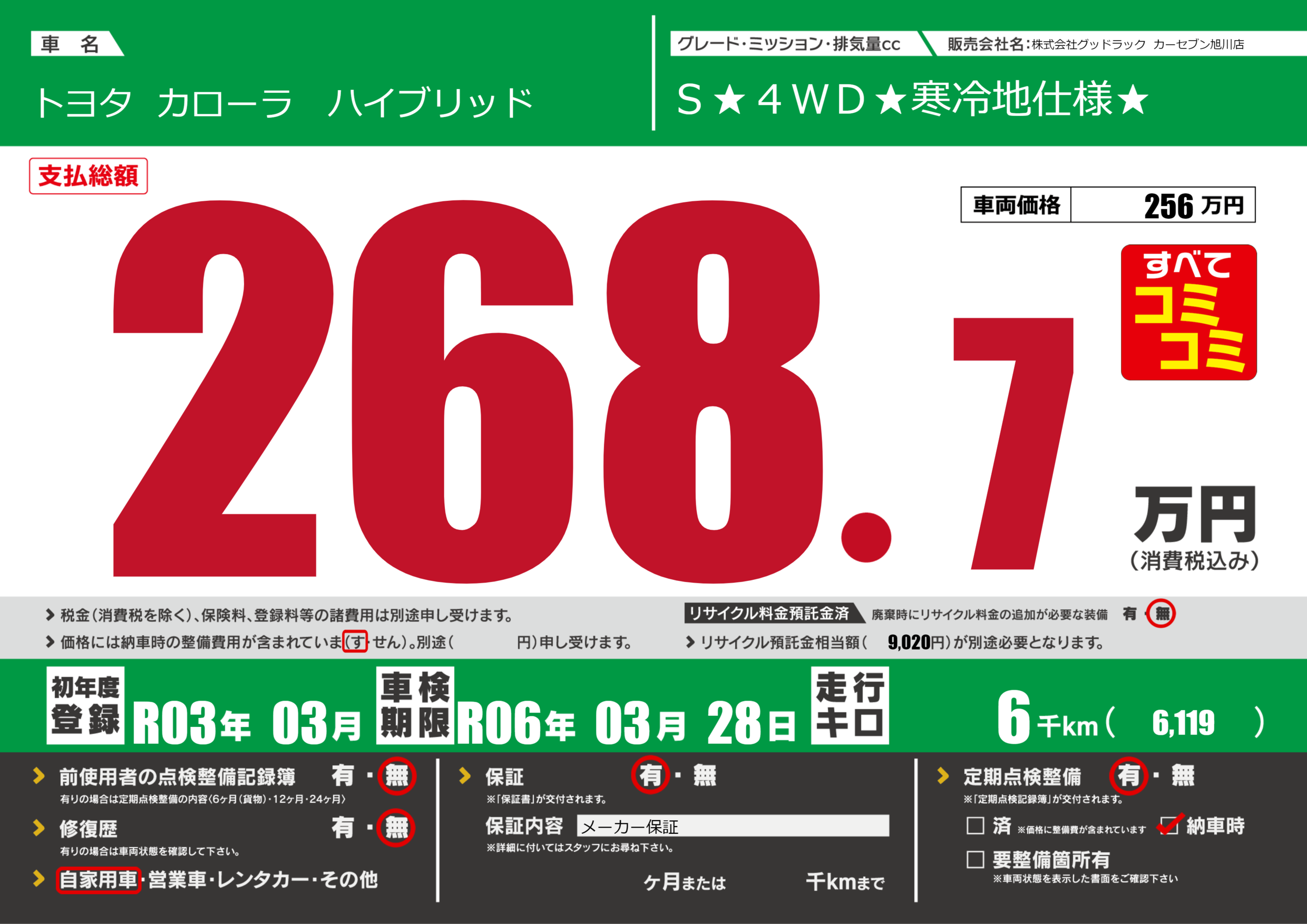 | 走行キロ | 0.6万km | 初年度登録 | R03年03月 |