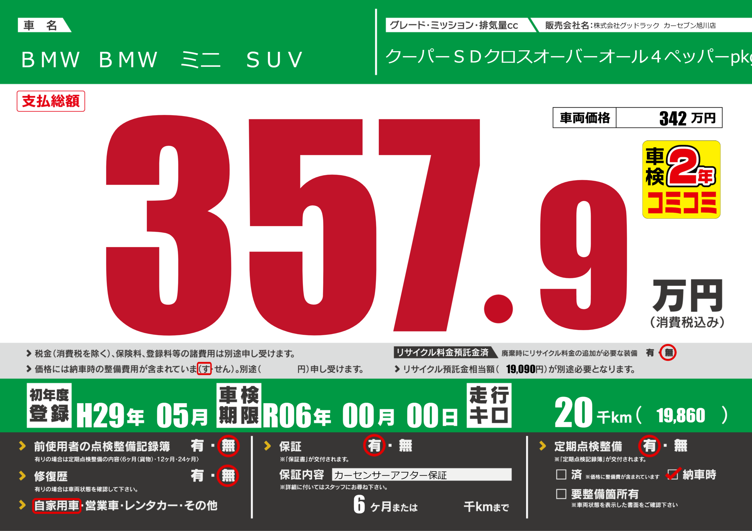 | 車名 | BMW BMW ミニ SUV | グレード ミッション 排気量 |