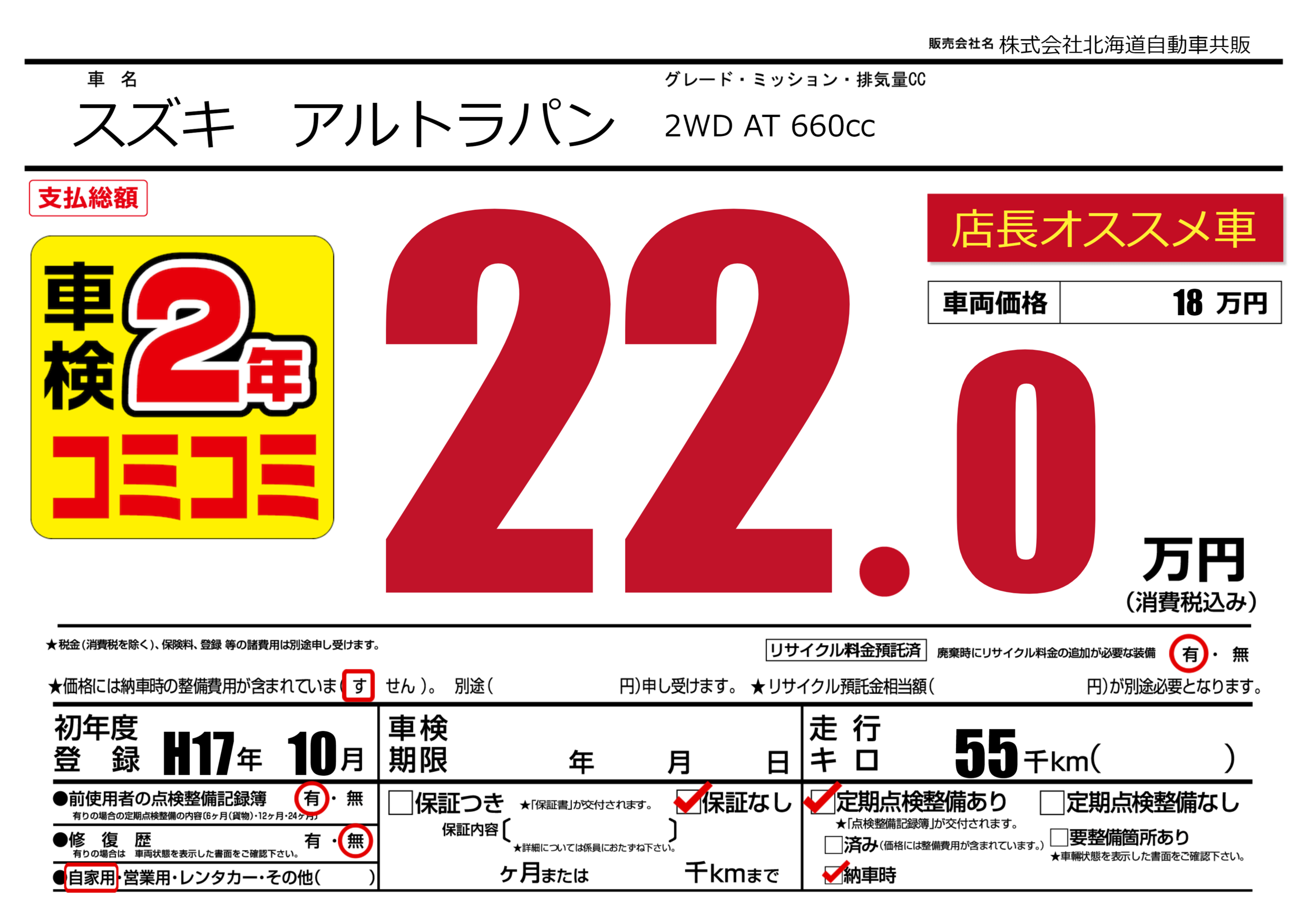 | 走行キロ | 5.5万km | 初年度登録 | H17年10月 |