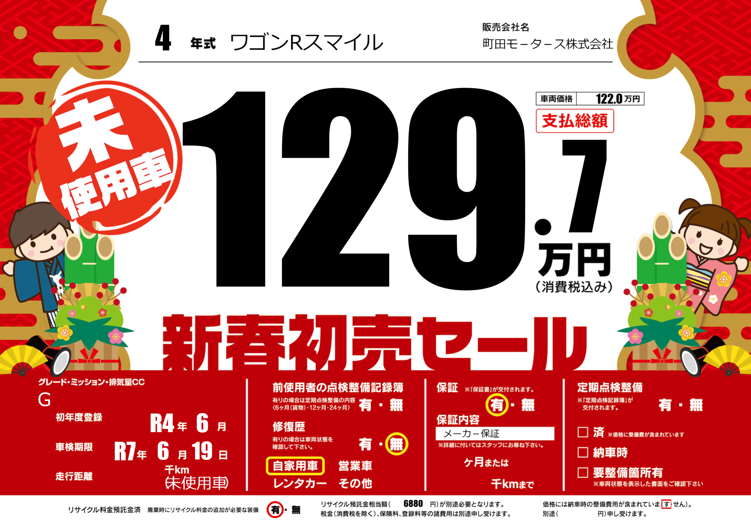 | 走行キロ | - | 初年度登録 | R4年6月 |