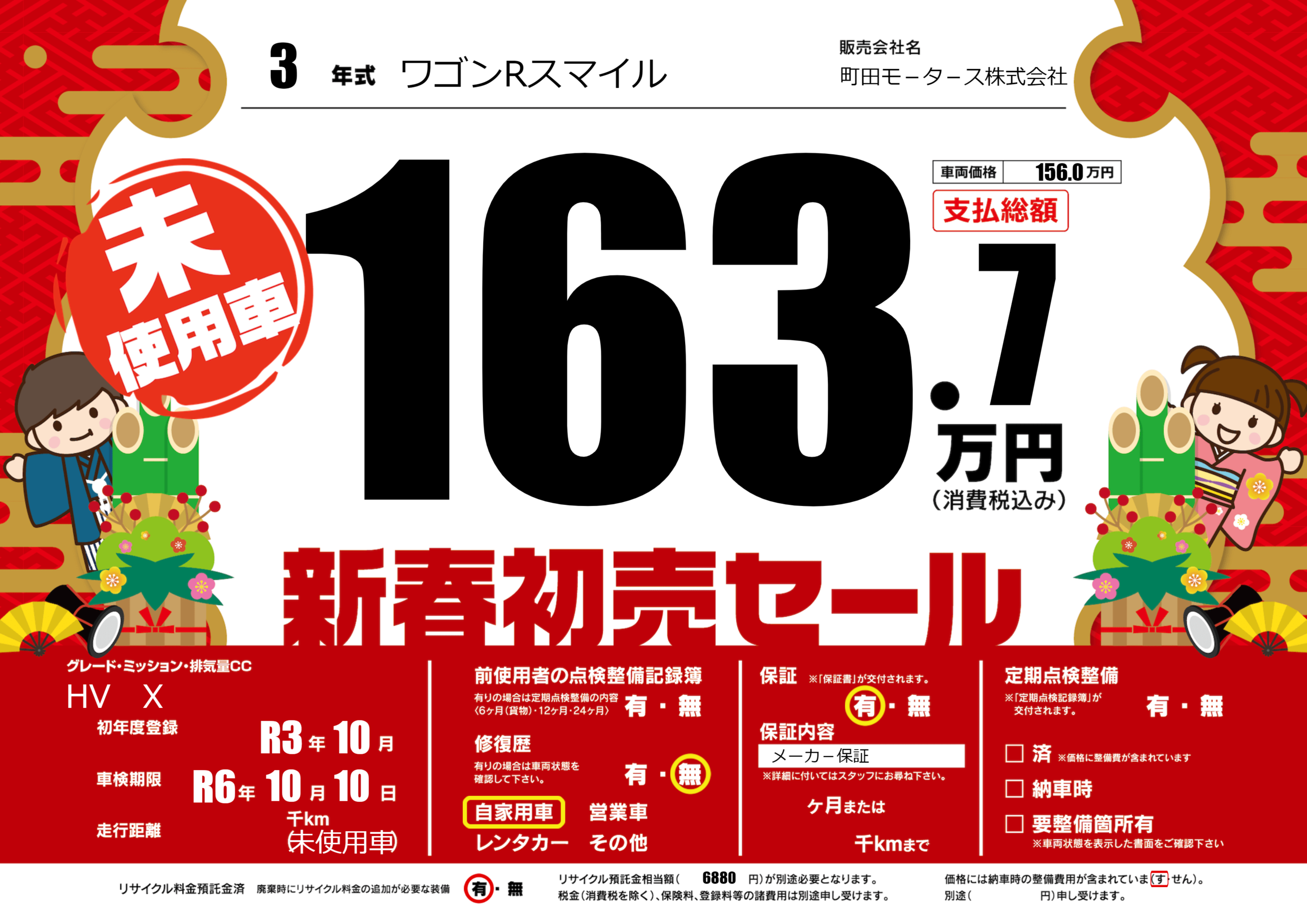 | 走行キロ | - | 初年度登録 | R3年10月 |