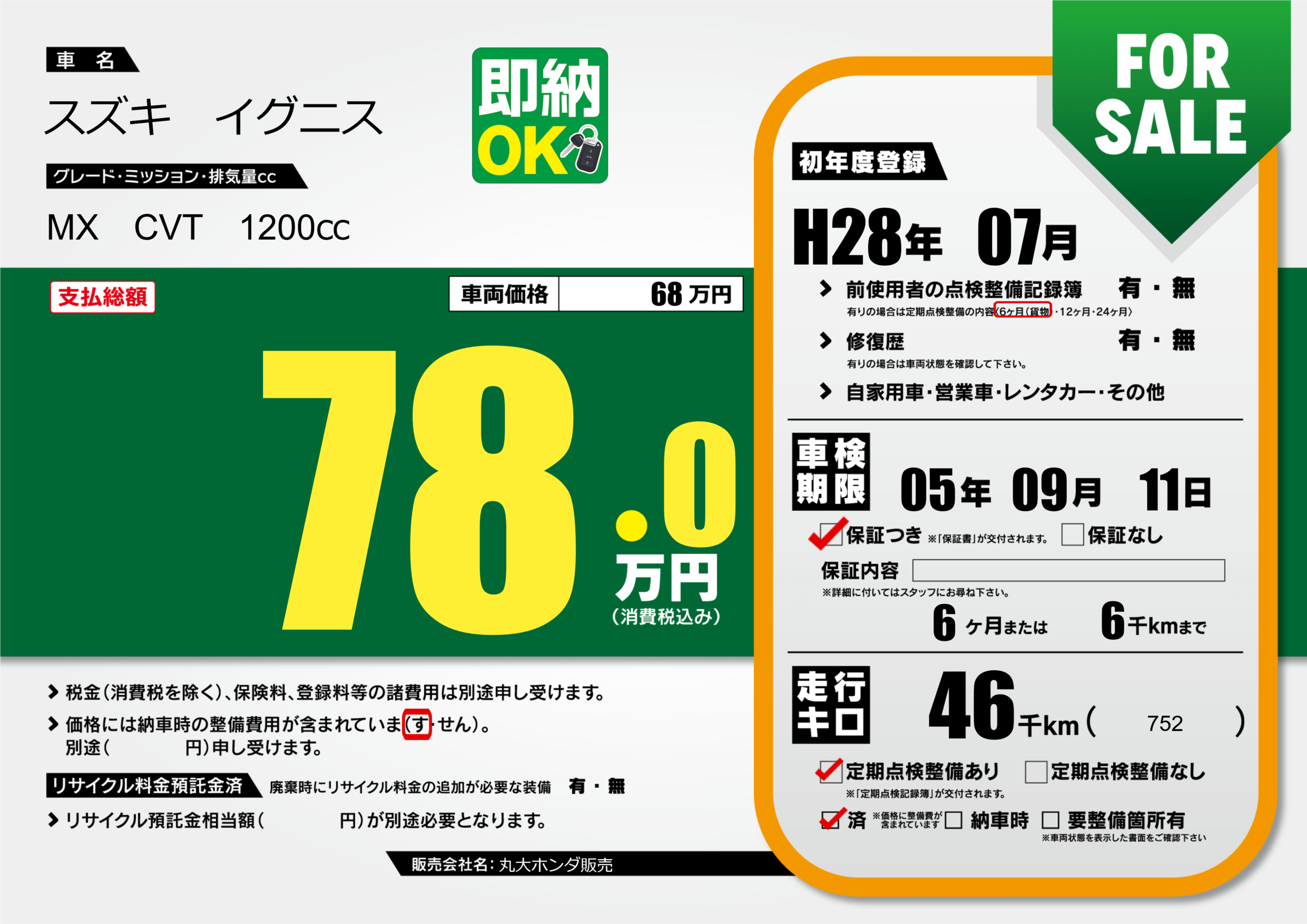 | 定期点検整備 | 定期点検整備あり 定期点検整備済み | ||