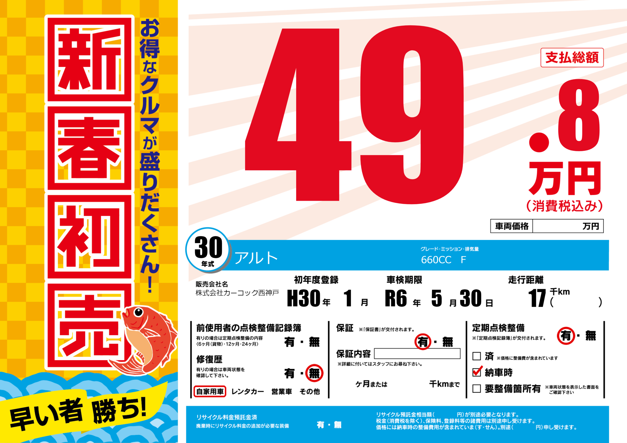 | 定期点検整備 | 定期点検整備あり 納車時あり | ||