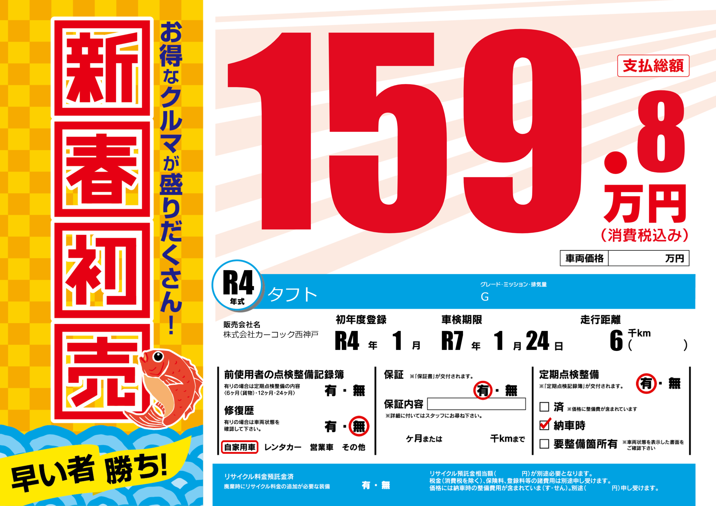 | 定期点検整備 | 定期点検整備あり 納車時あり | ||