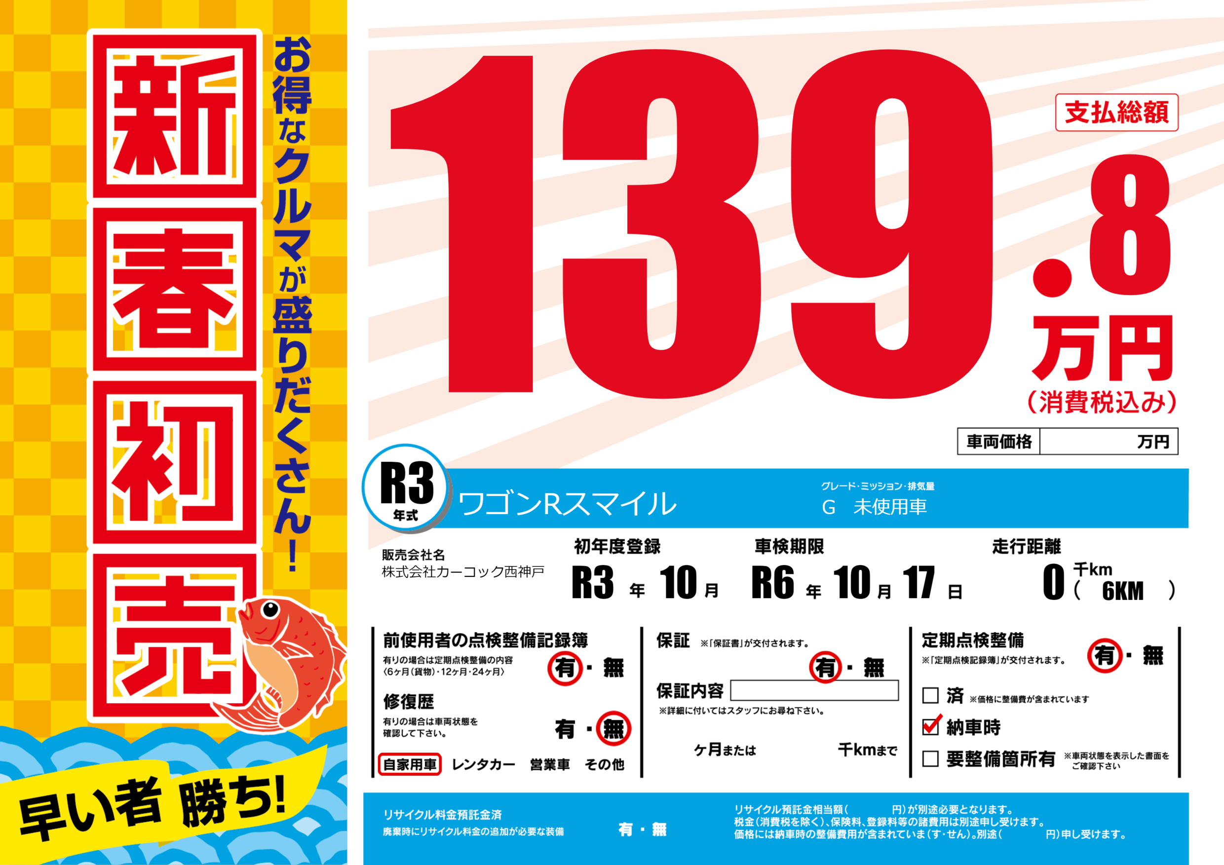 | 走行キロ | - | 初年度登録 | R3年10月 |