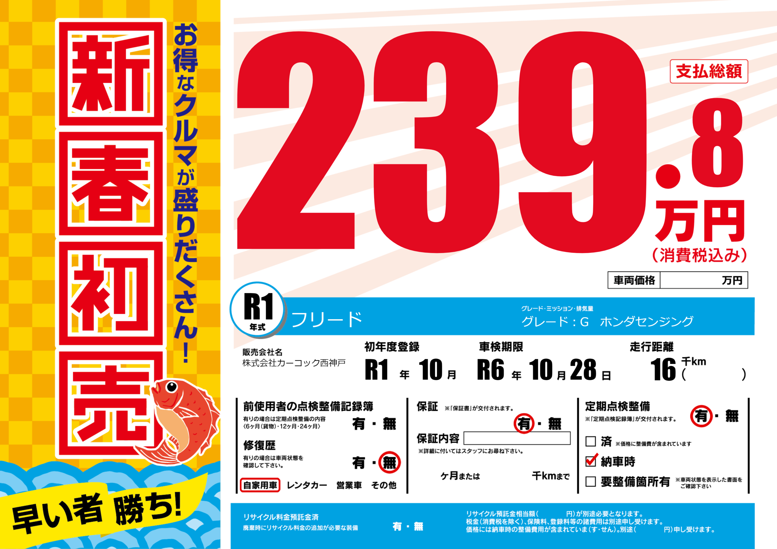 | 定期点検整備 | 定期点検整備あり 納車時あり | ||