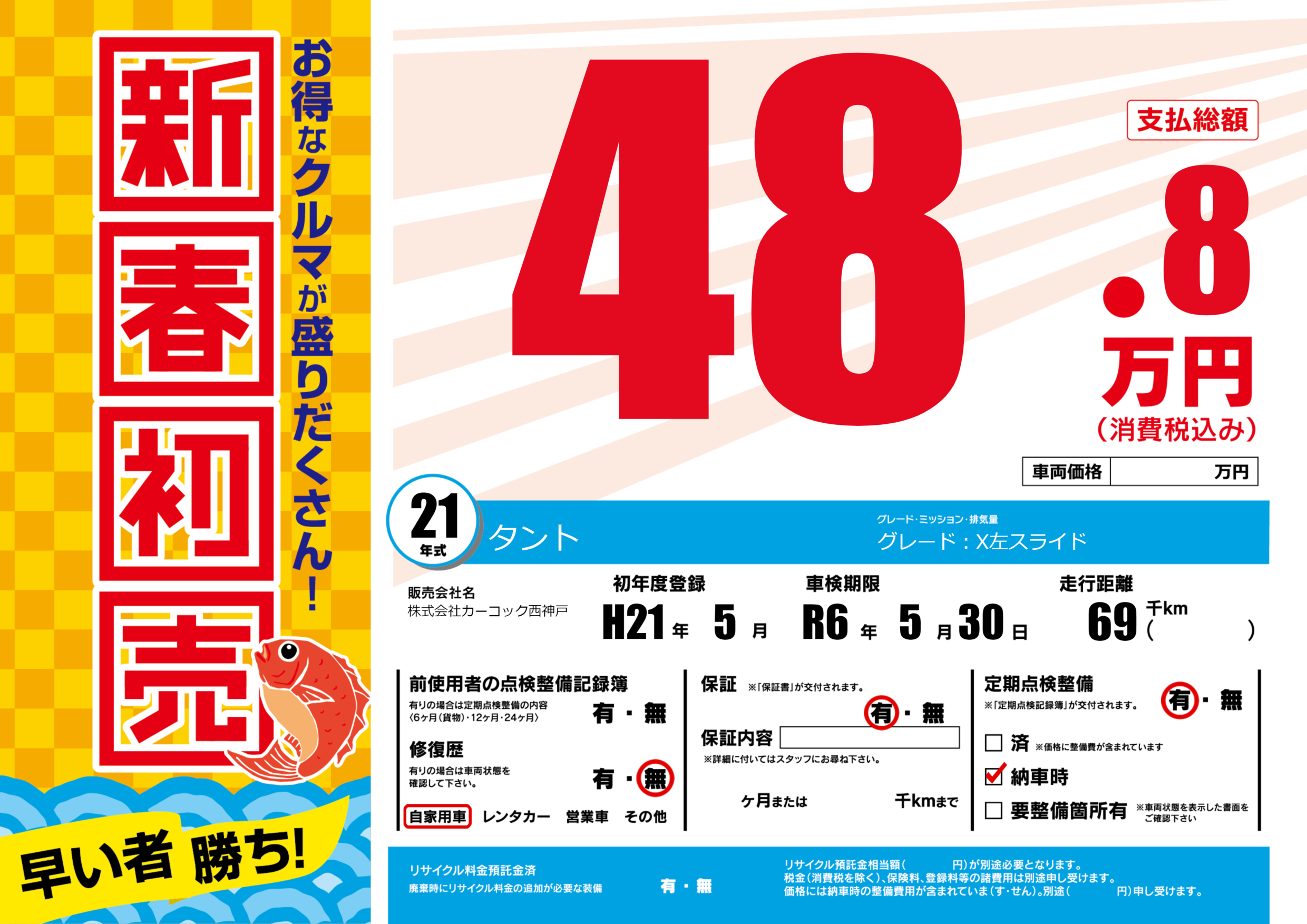 | 走行キロ | 6.9万km | 初年度登録 | H21年5月 |
