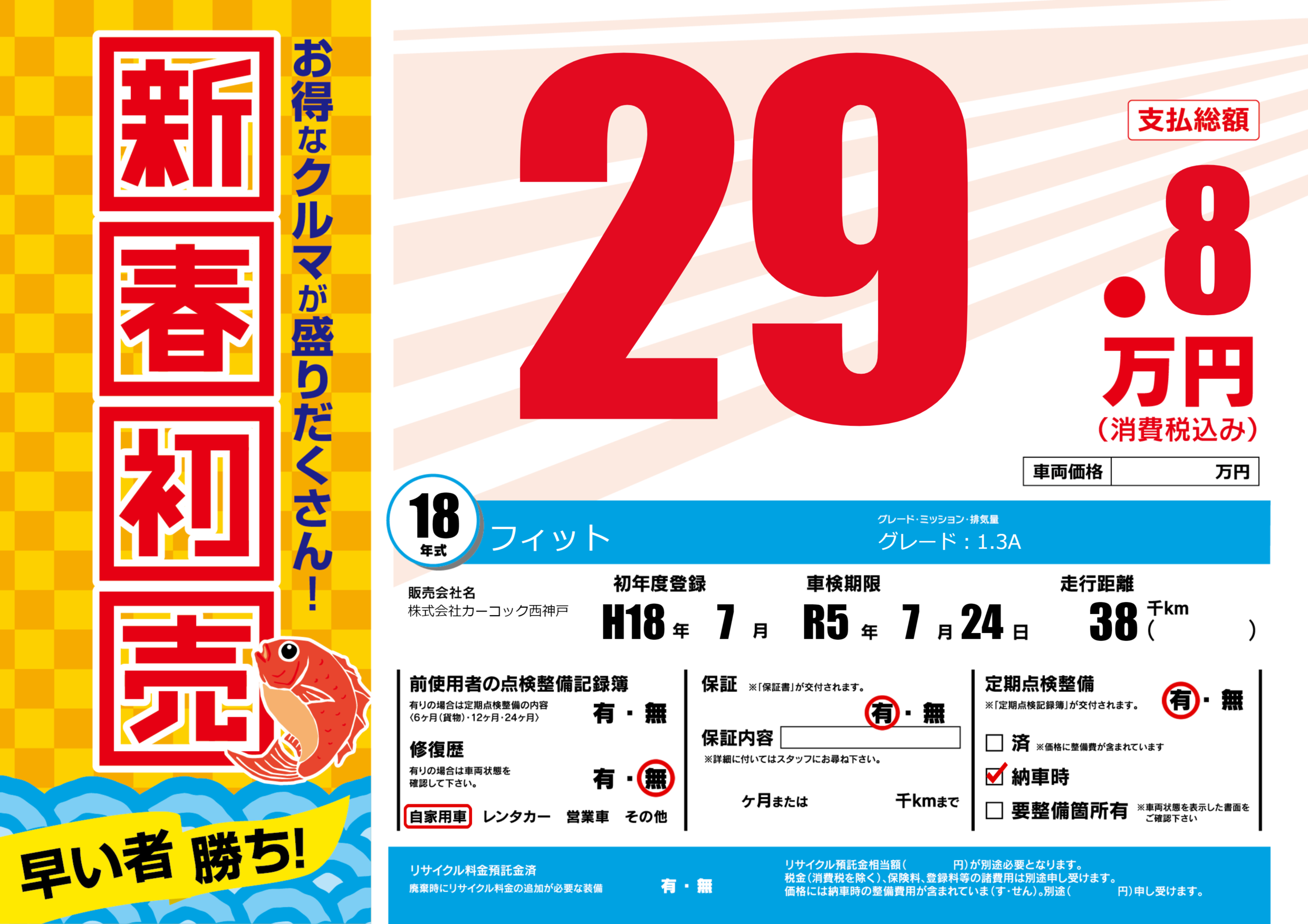 | 定期点検整備 | 定期点検整備あり 納車時あり | ||