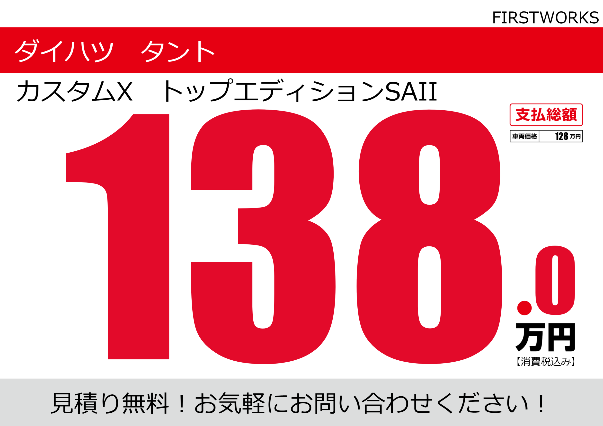 | 車名 | ダイハツ タント | グレード ミッション 排気量 |