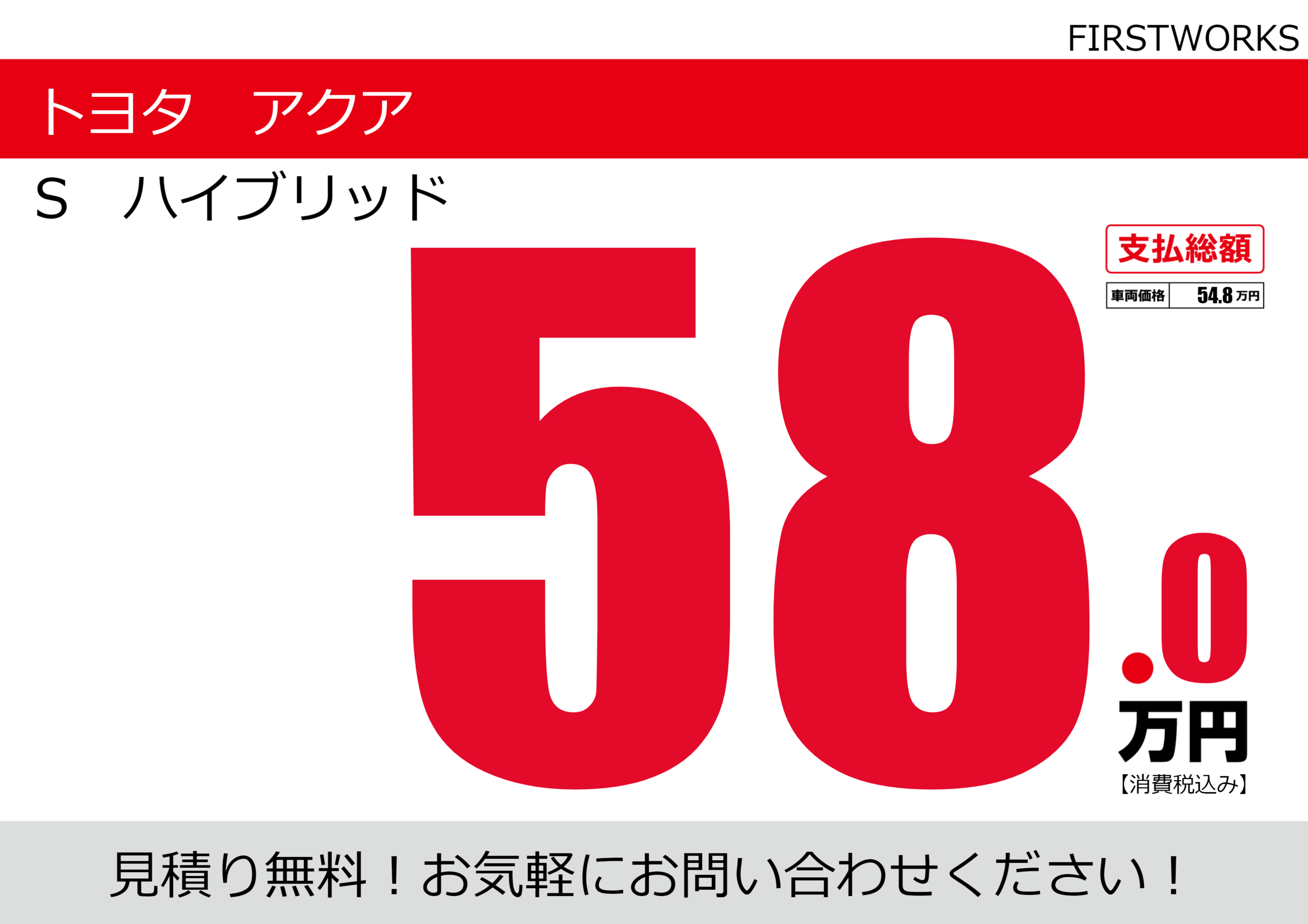 | 車名 | トヨタ アクア | グレード ミッション 排気量 |