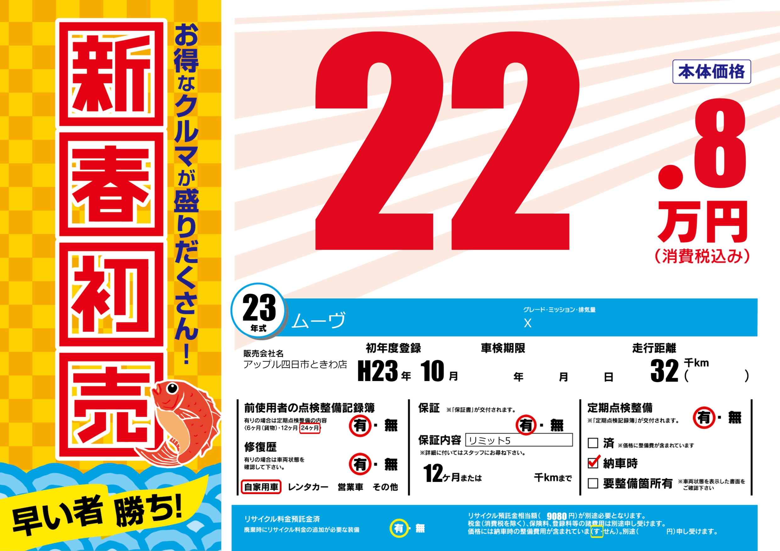 保証付き 保証内容(リミット5) 12ヶ月または()千kmまで |
