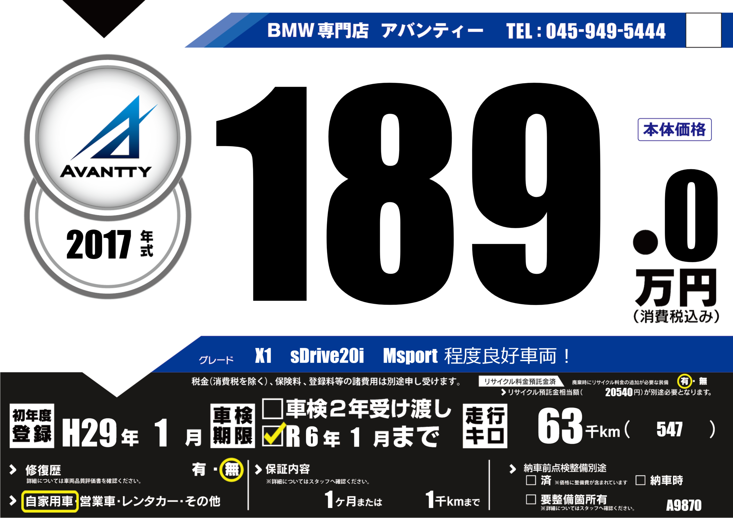 | 走行キロ | 6.3万km | 初年度登録 | H29年1月 |