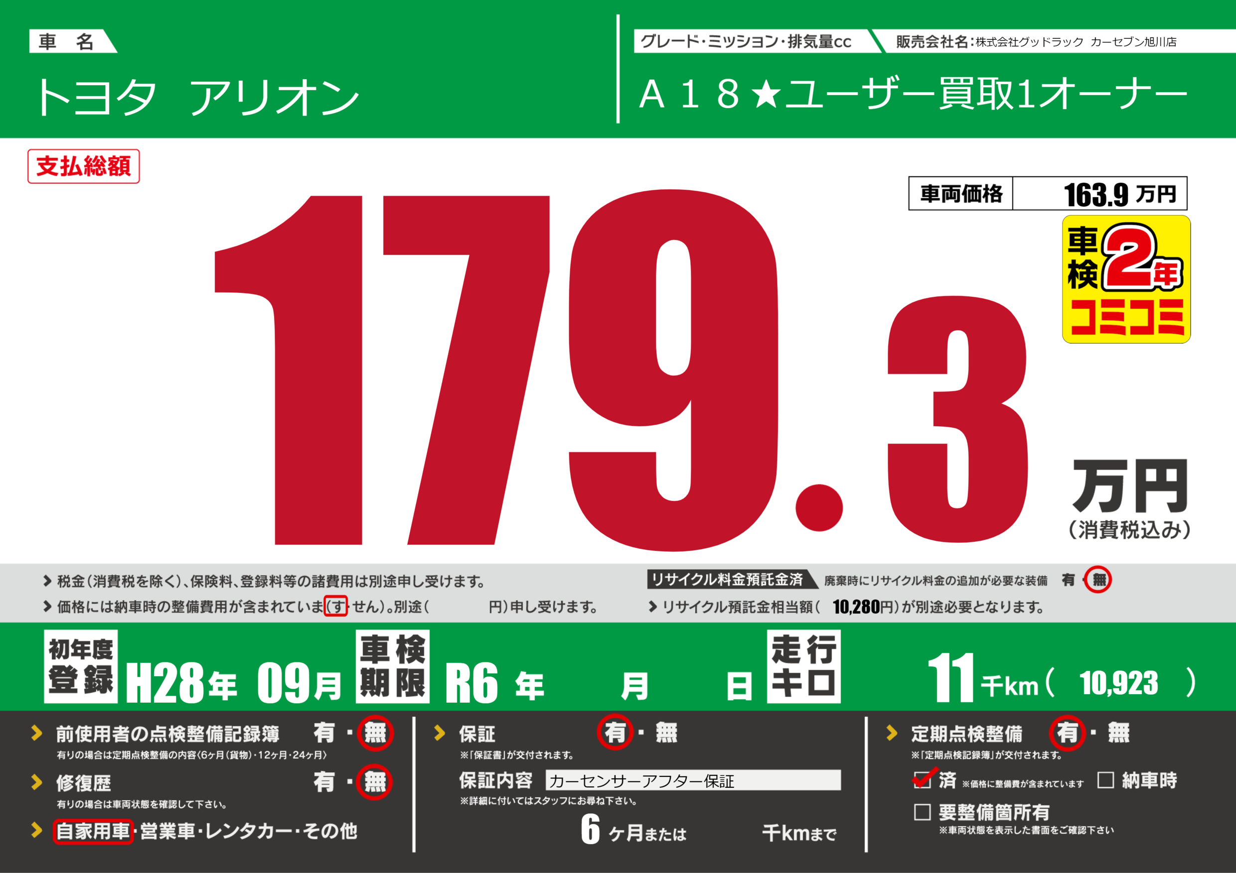 | 定期点検整備 | 定期点検整備あり 定期点検整備済み | ||