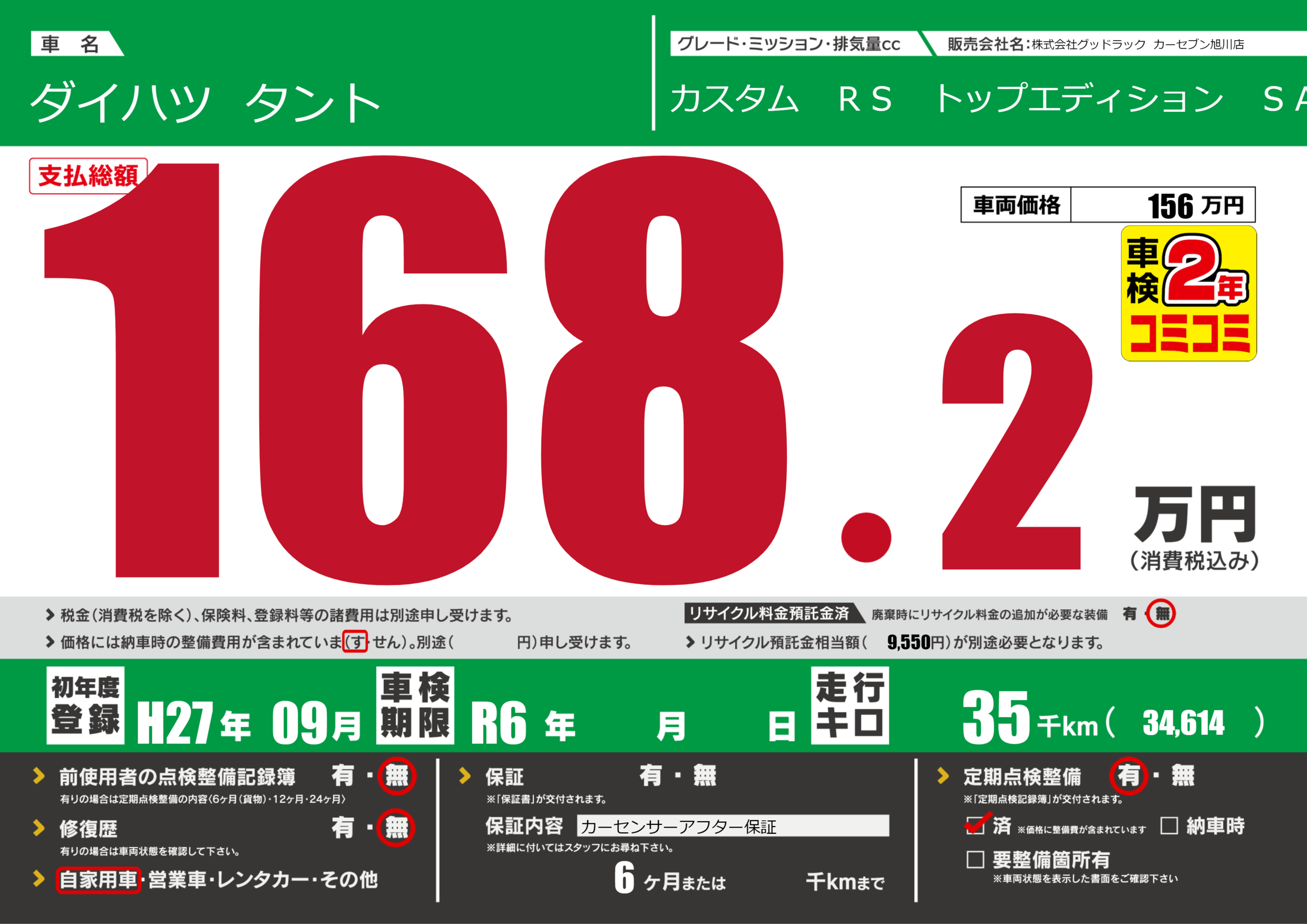 | 定期点検整備 | 定期点検整備あり 定期点検整備済み | ||