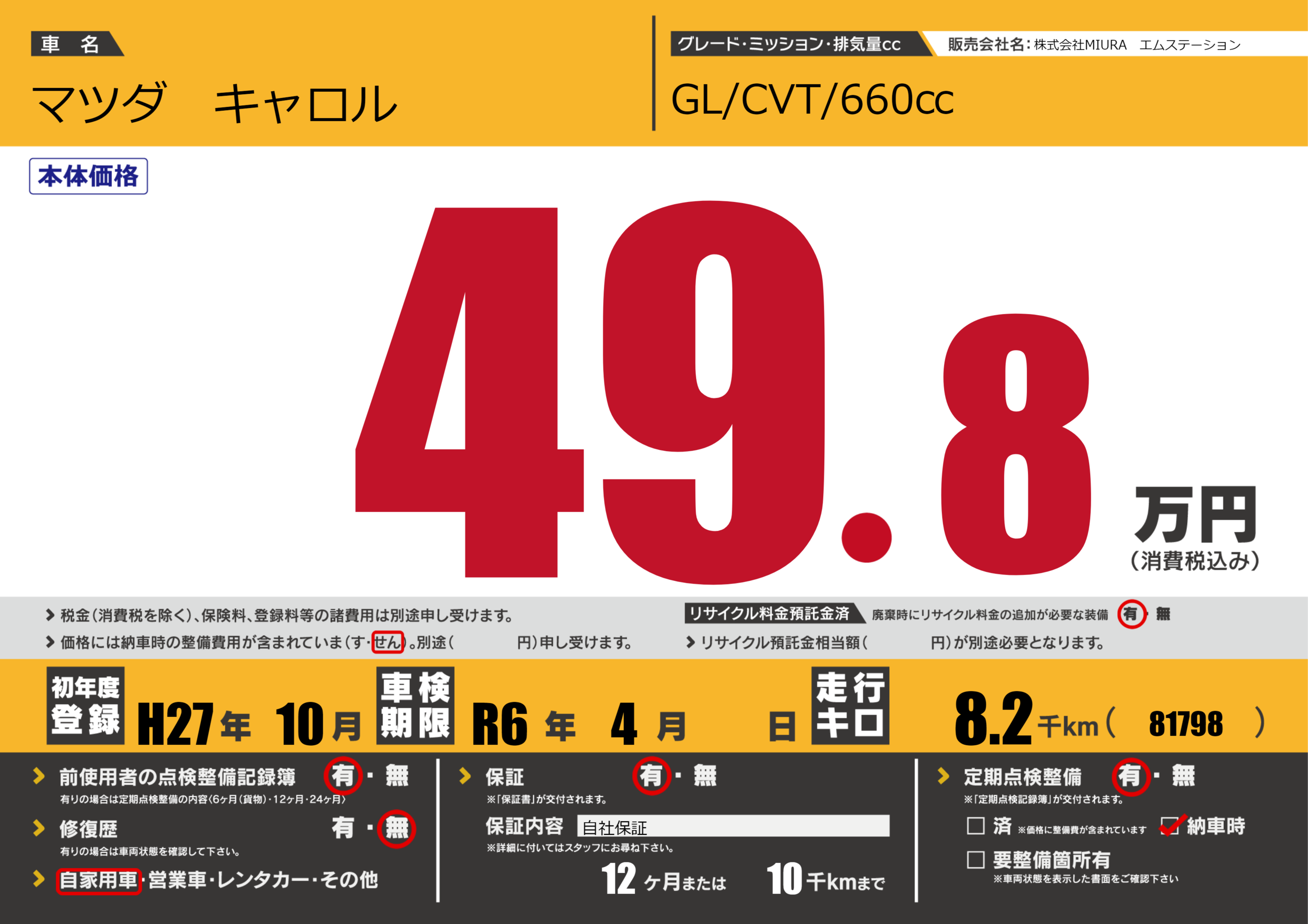 なし | 車検制限 | R6年4月---月 |
