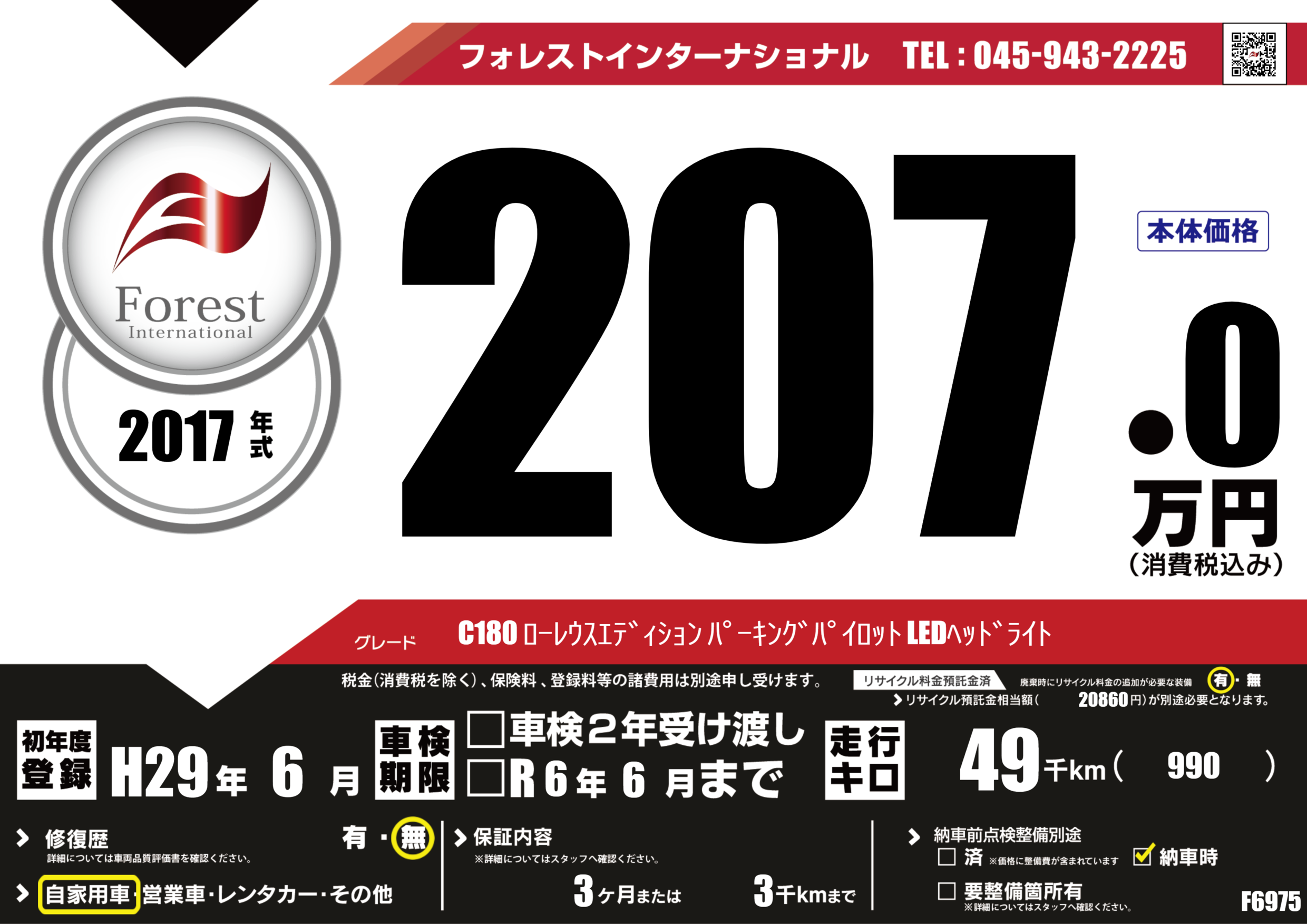 | 走行キロ | 4.9万km | 初年度登録 | H29年6月 |