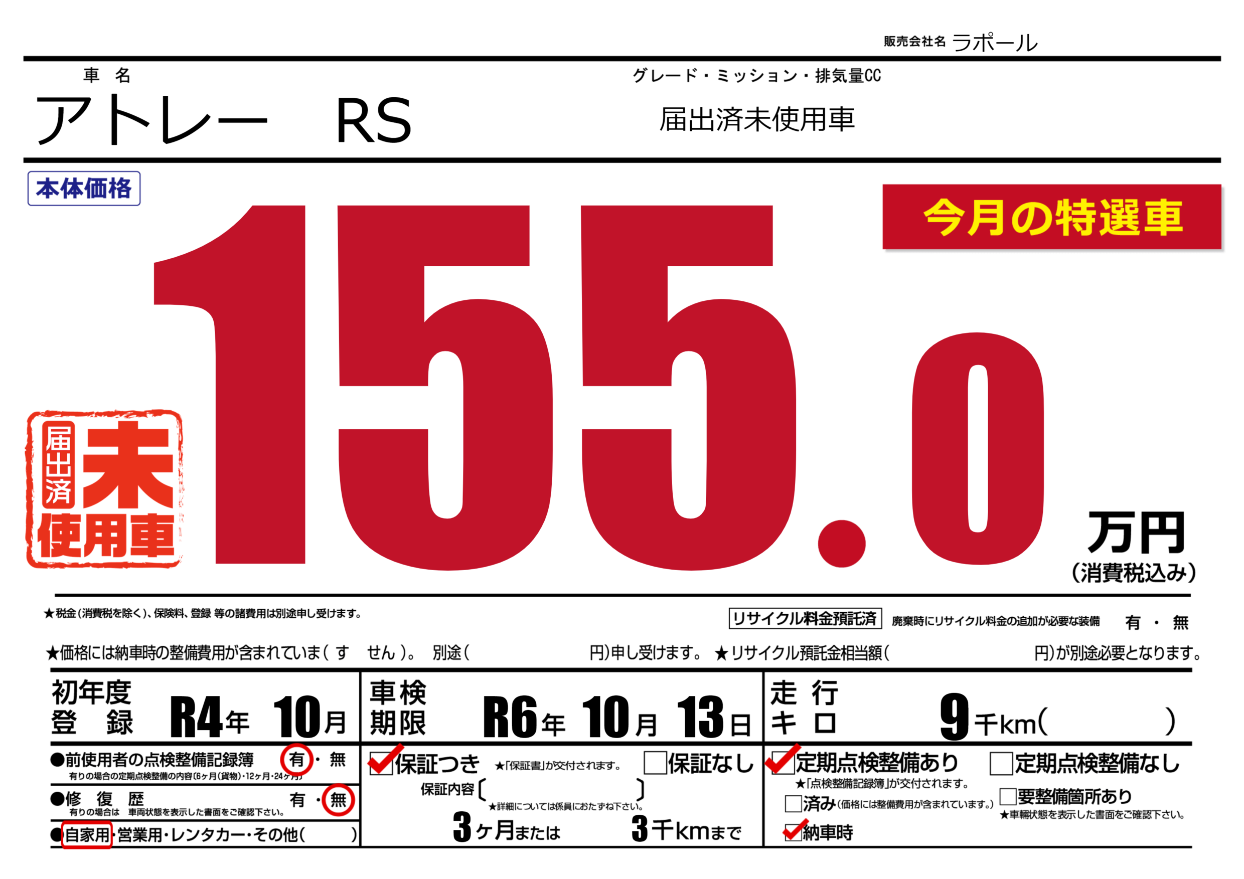 届出済未使用車 |