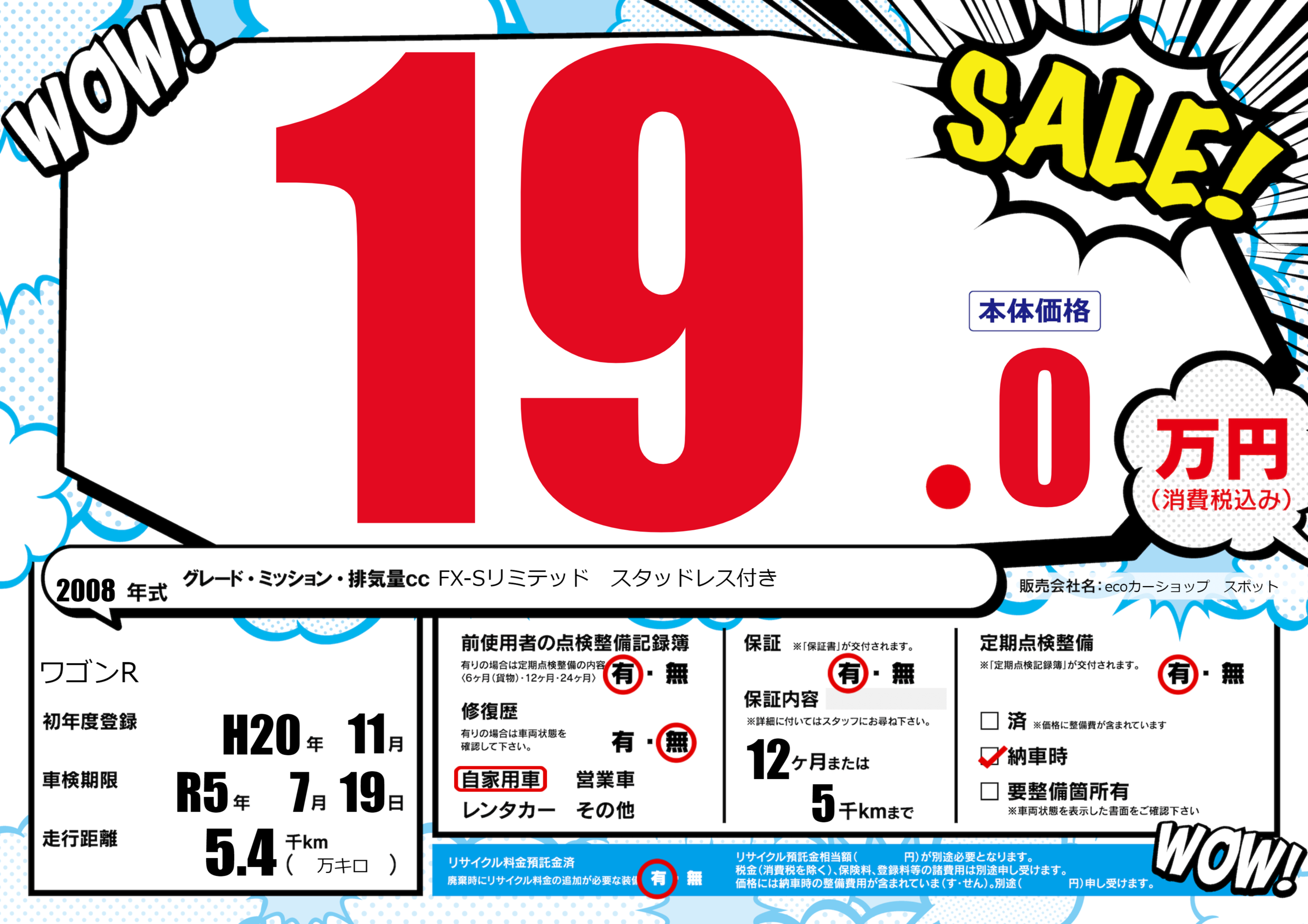 保証付き 保証内容(---) 12ヶ月または(5)千kmまで |