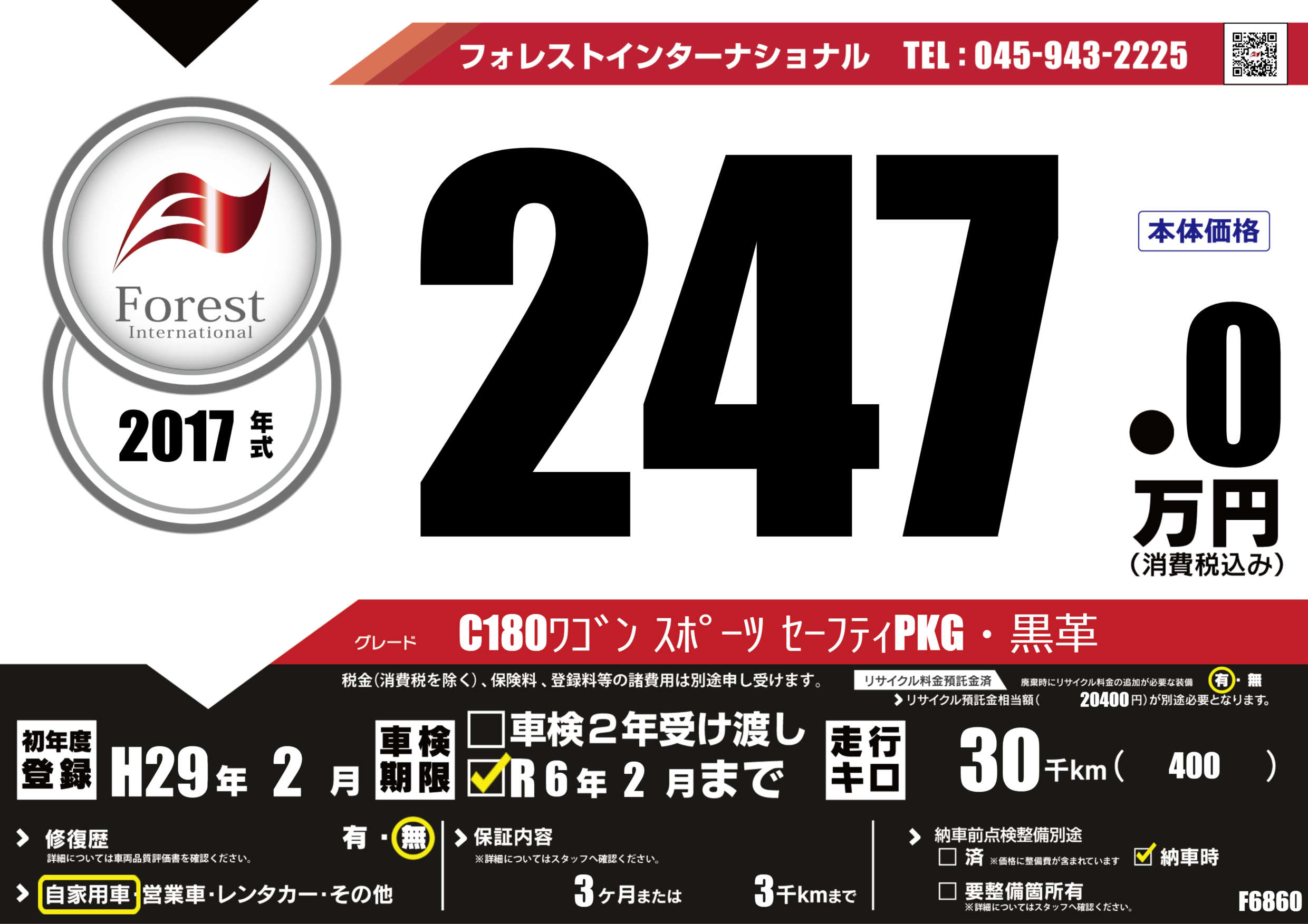 | 走行キロ | 3万km | 初年度登録 | H29年2月 |