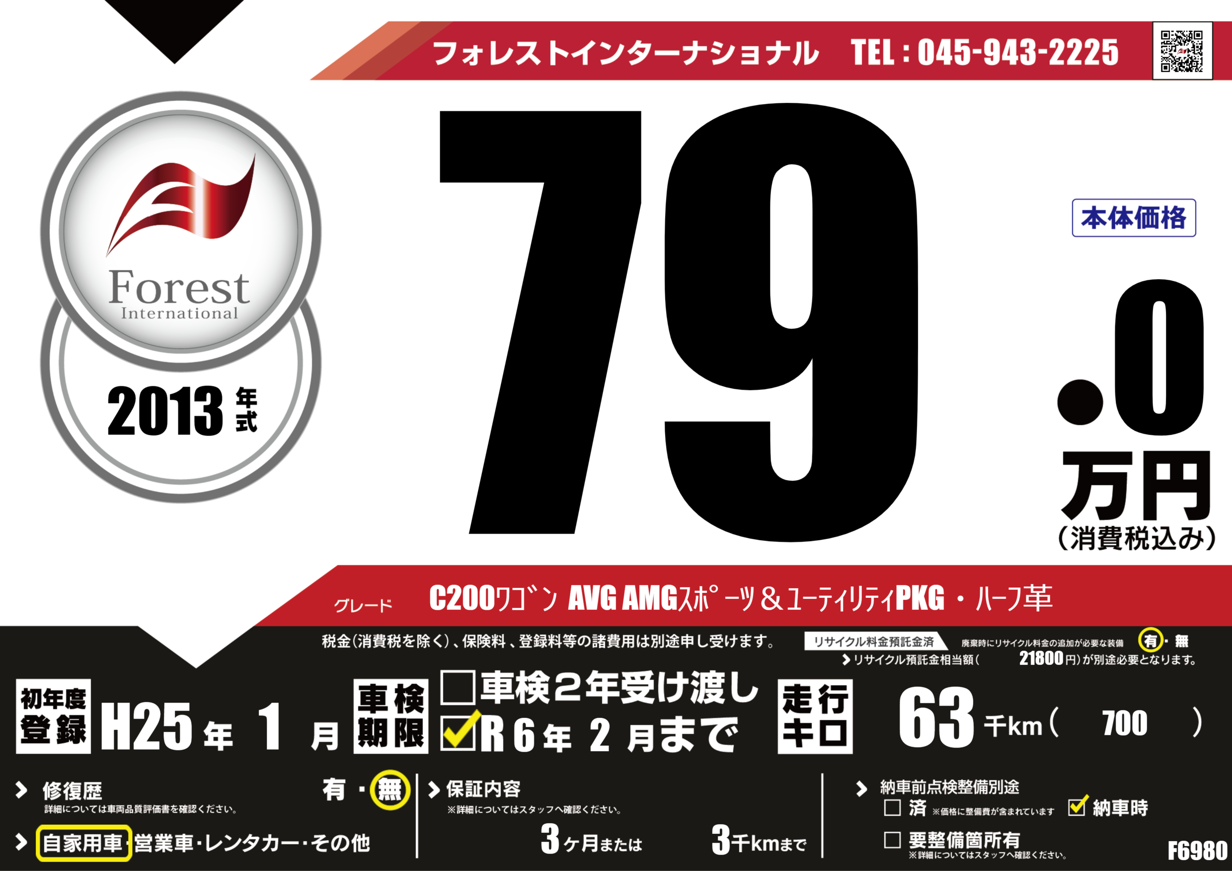 | 走行キロ | 6.3万km | ||