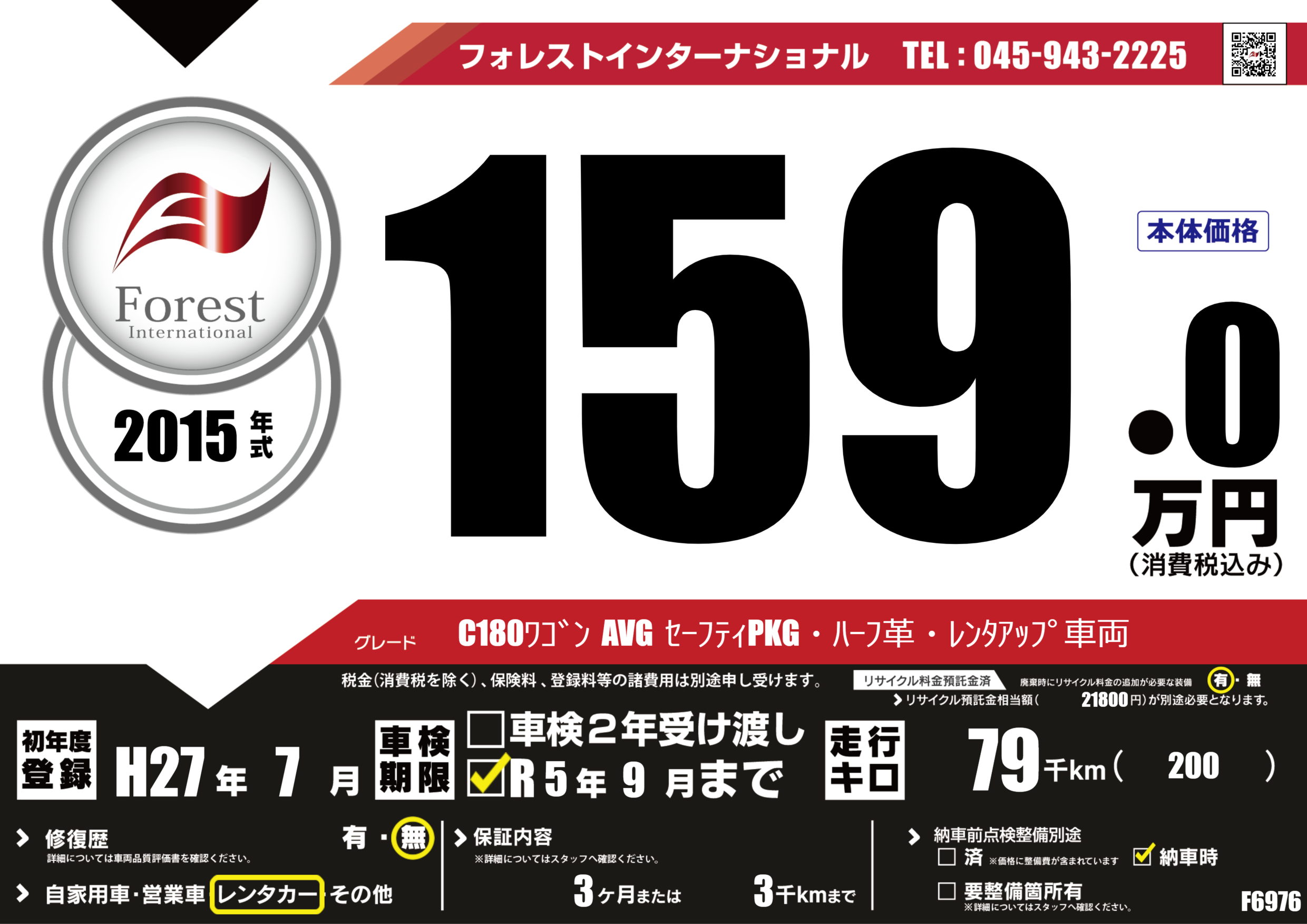 C180ワゴン AVG セーフティPKG・ハーフ革・レンタアップ車両 |