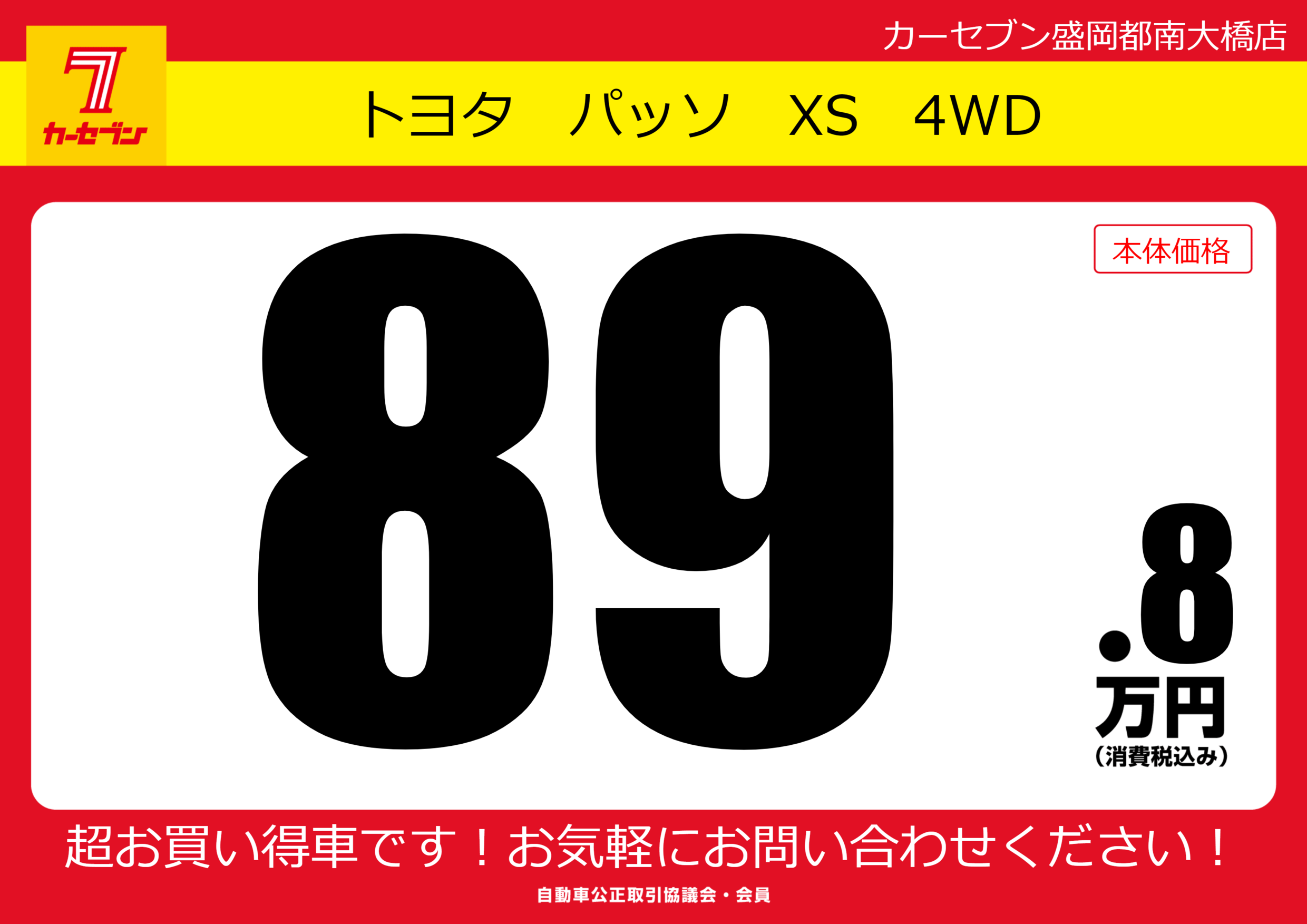 | 車名 | トヨタ パッソ XS 4WD | グレード ミッション 排気量 |
