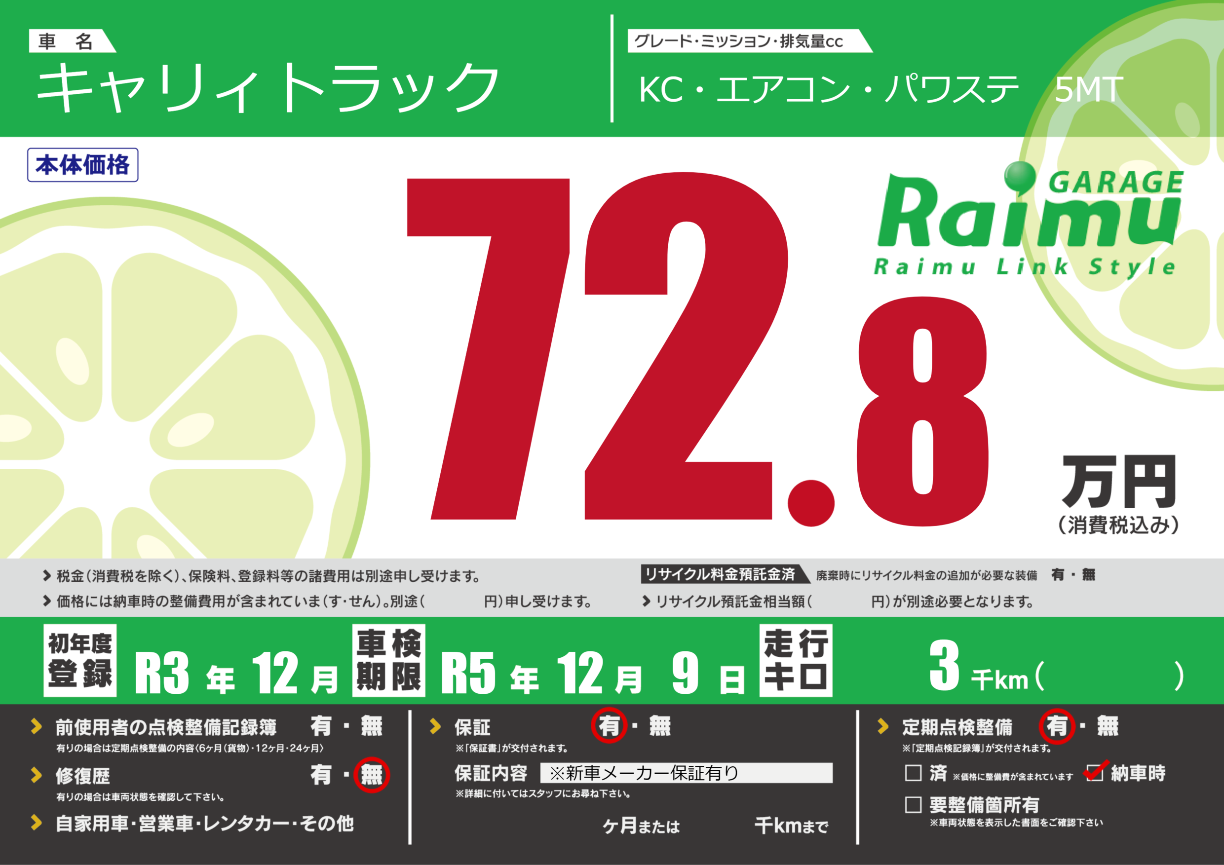 なし | 車検制限 | R5年12月9月 |
