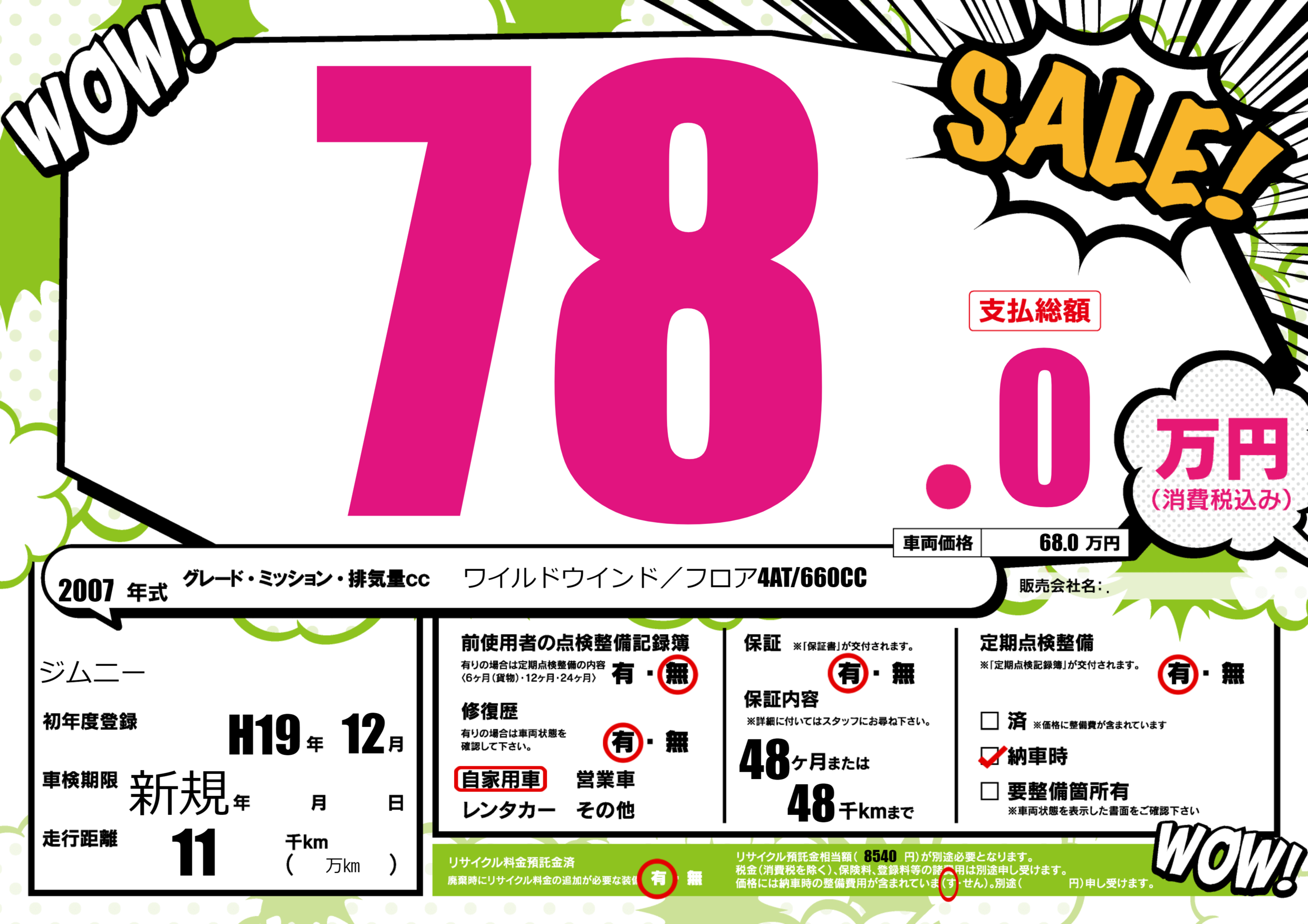 保証付き 保証内容(---) 48ヶ月または(48)千kmまで |