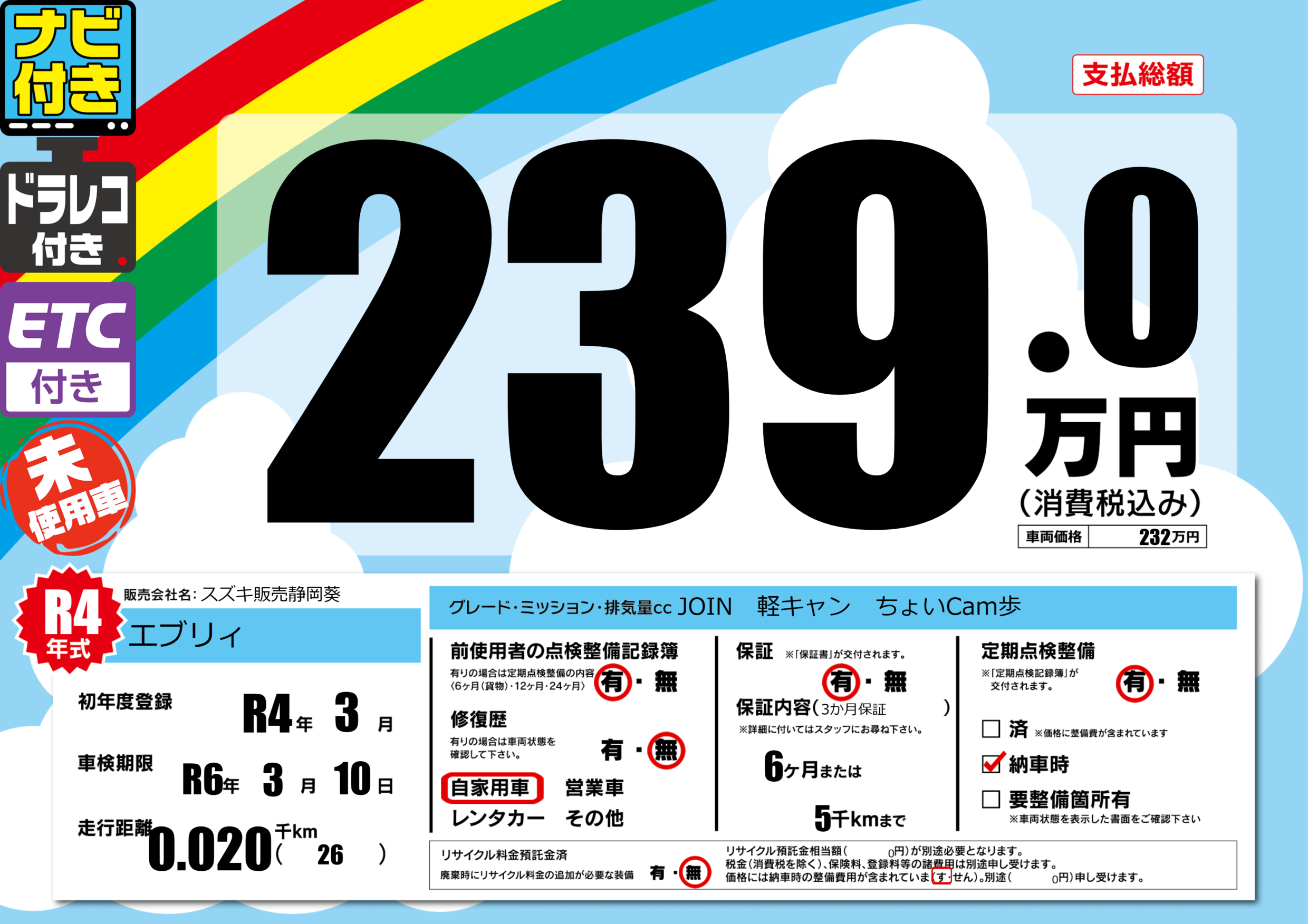 | 車名 | エブリィ | グレード ミッション 排気量 |