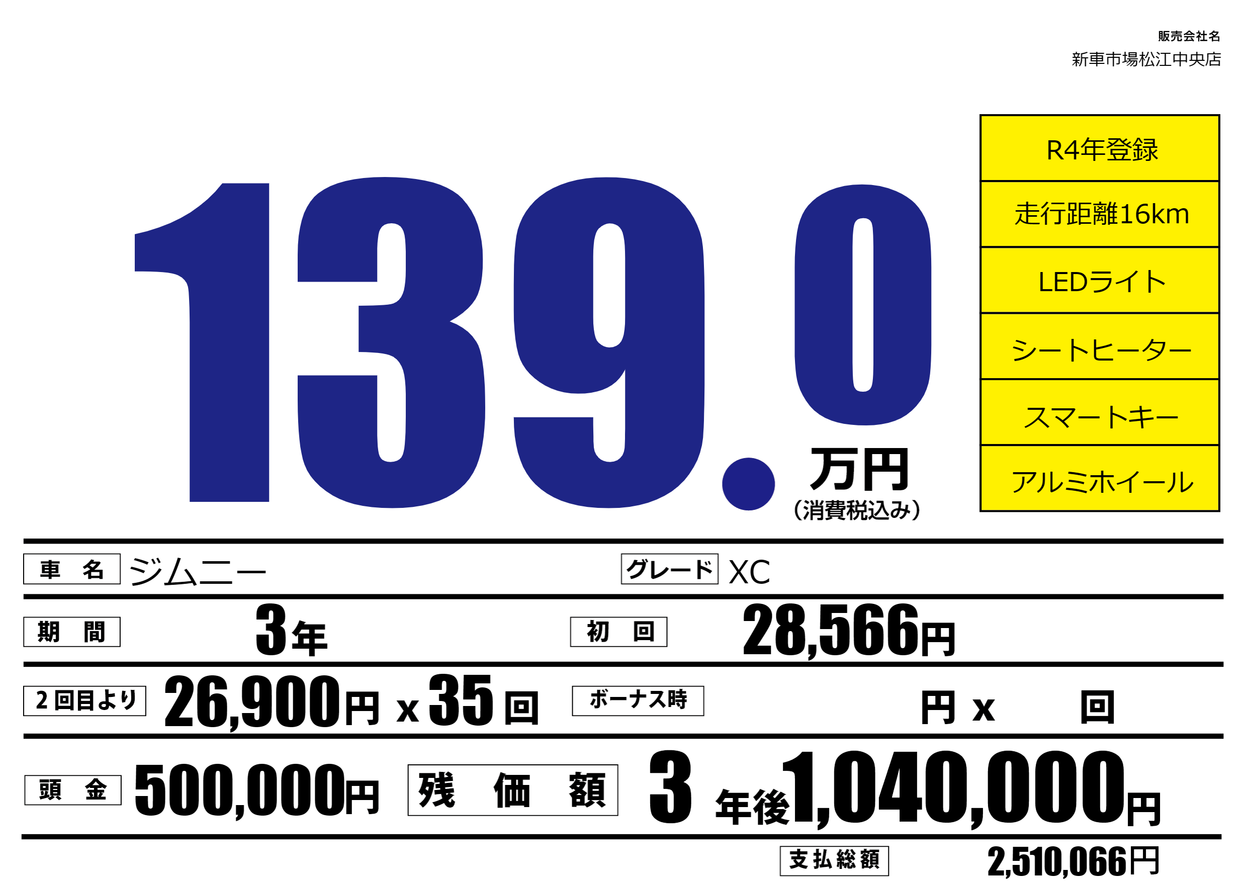 | 車名 | ジムニー | グレード ミッション 排気量 |