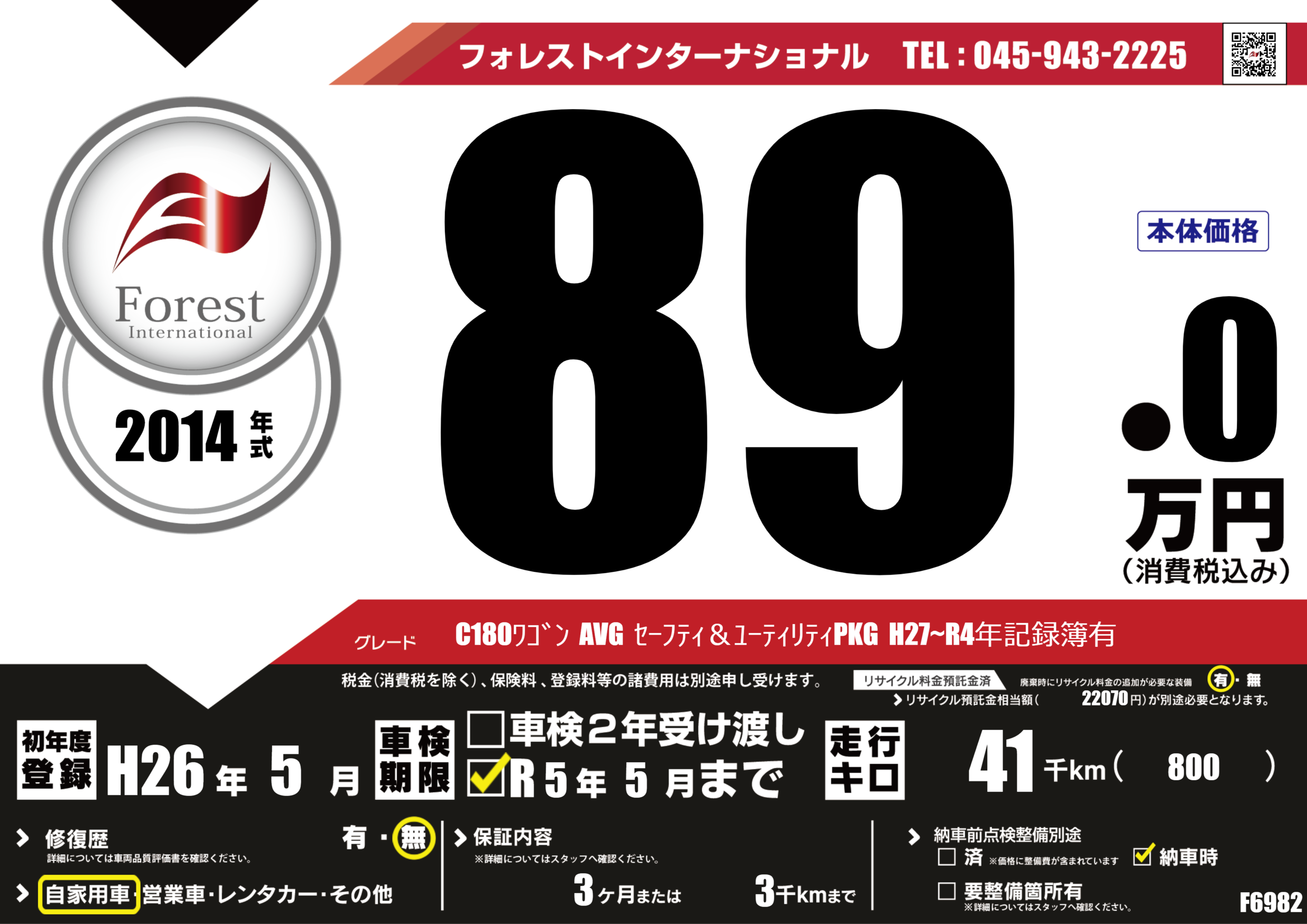 C180ワゴン AVG セーフティ&ユーティリティPKG H27~R4年記録簿有 |