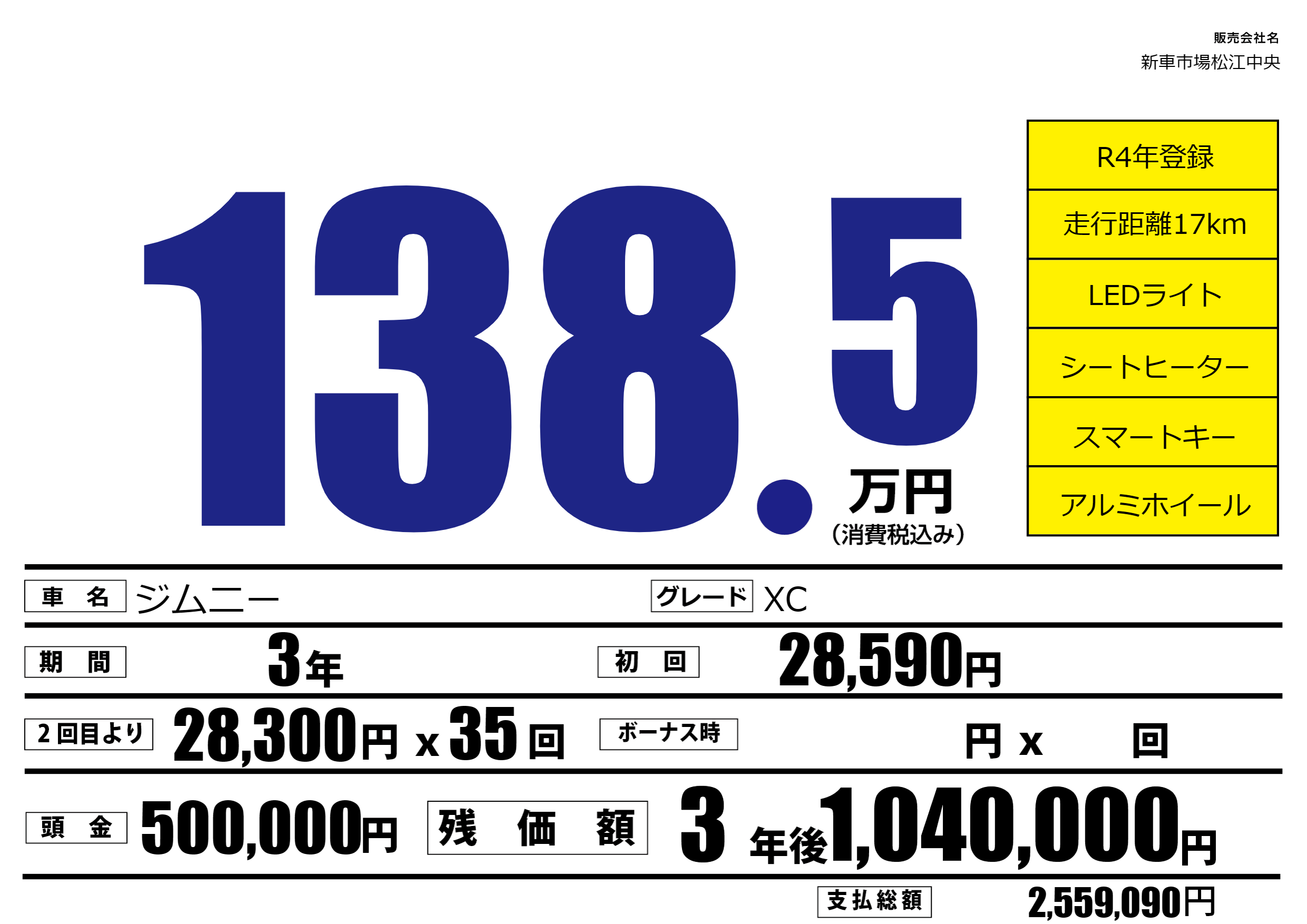 | 車名 | ジムニー | グレード ミッション 排気量 |