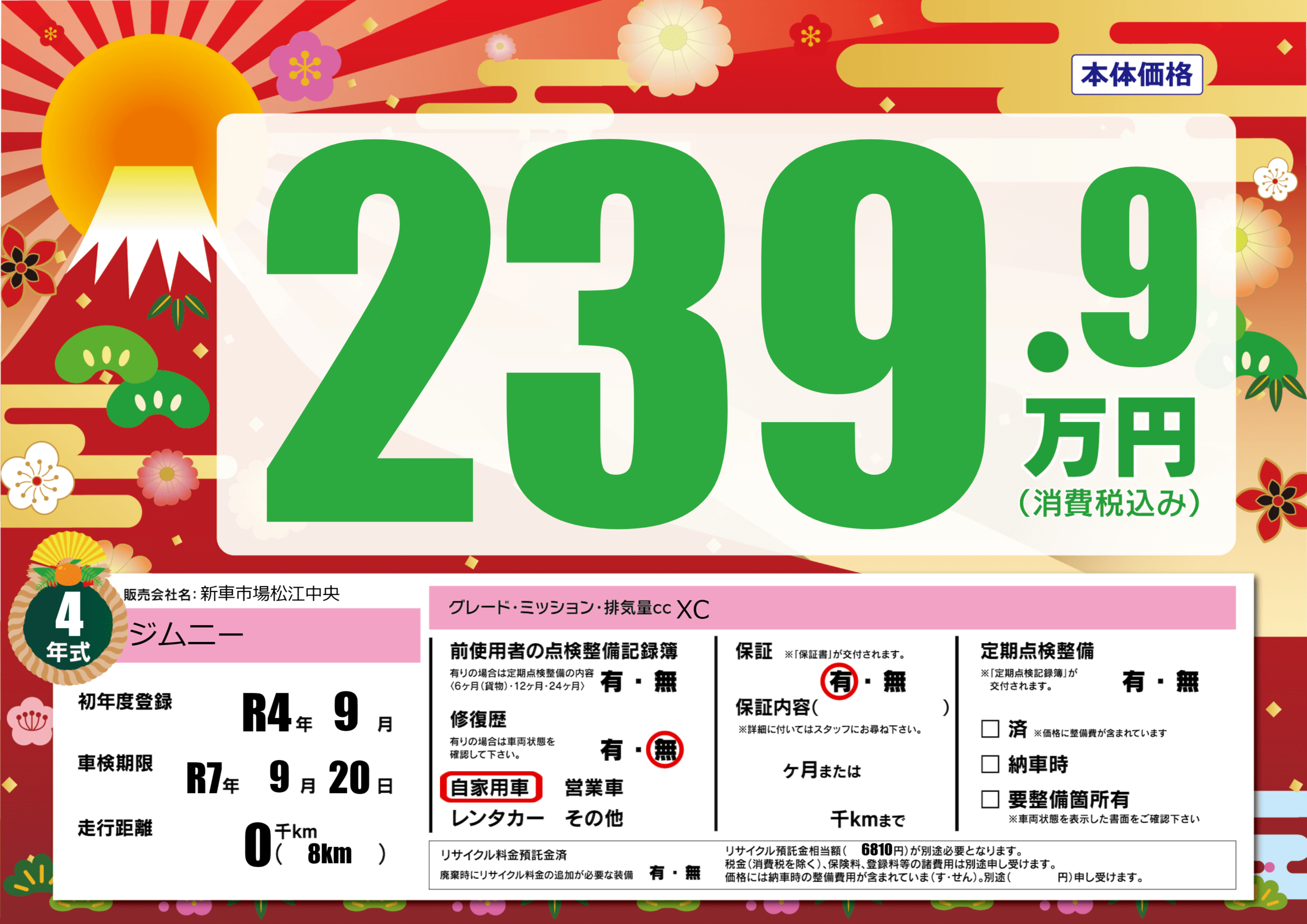 | 車名 | ジムニー | グレード ミッション 排気量 |