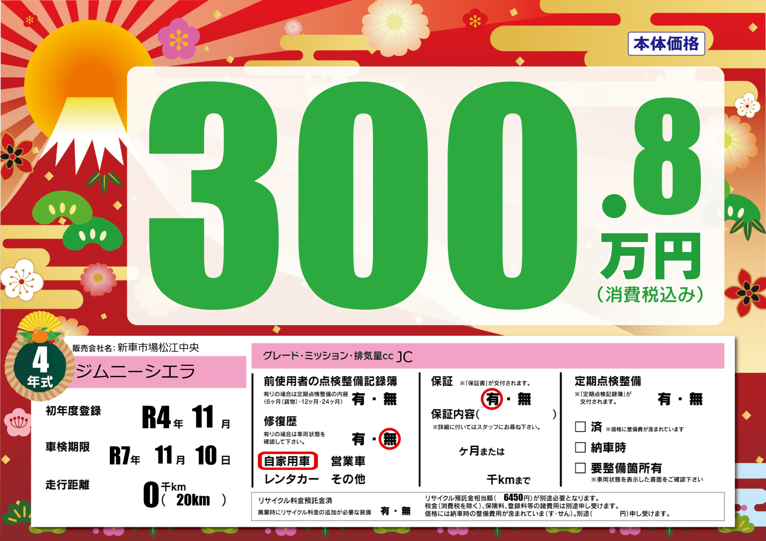 | 車名 | ジムニーシエラ | グレード ミッション 排気量 |