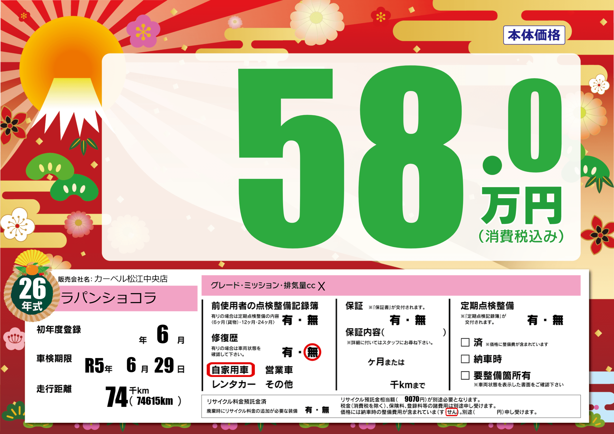 | 走行キロ | 7.4万km | 初年度登録 | ---年6月 |