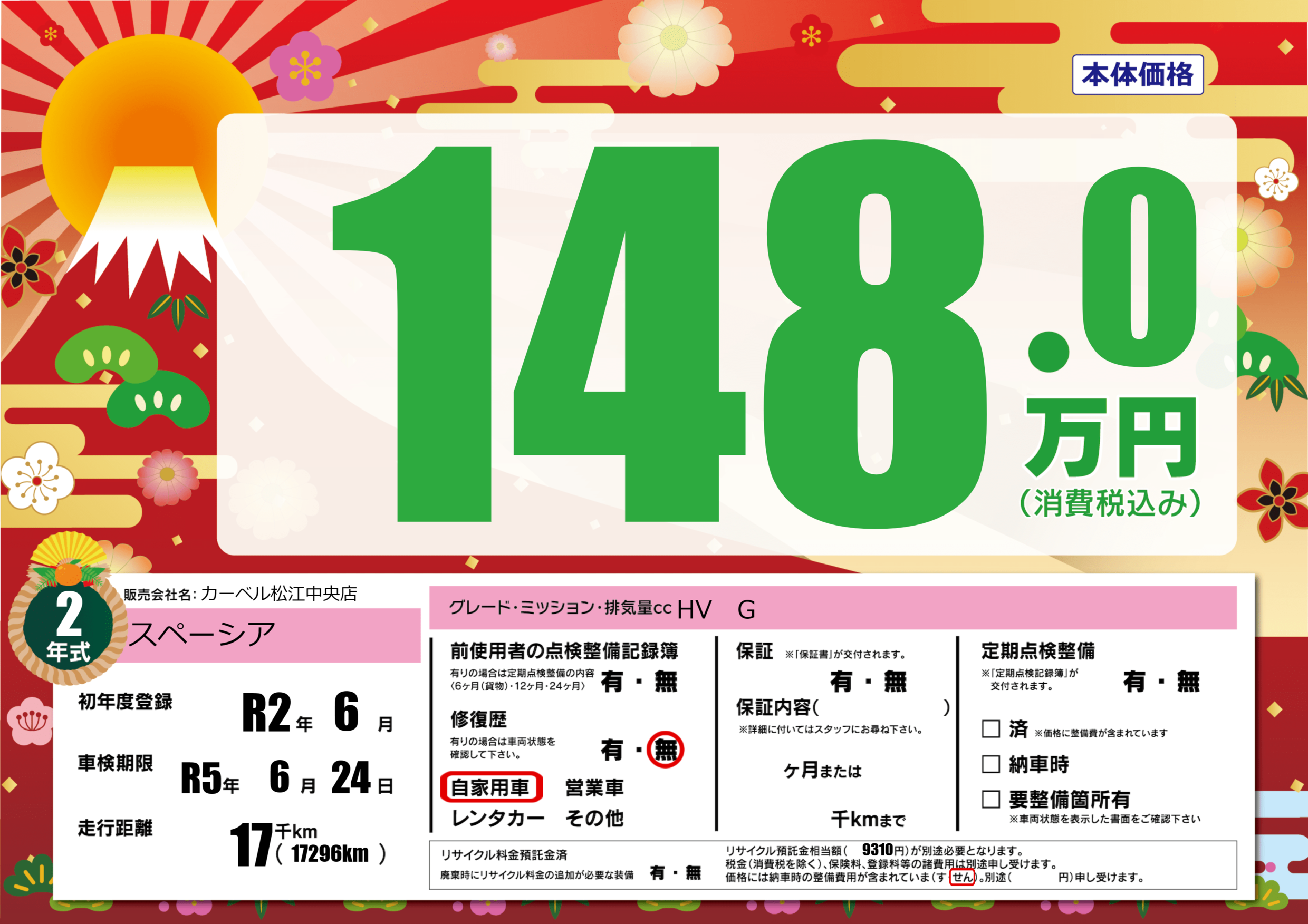 | 車名 | スペーシア | グレード ミッション 排気量 |