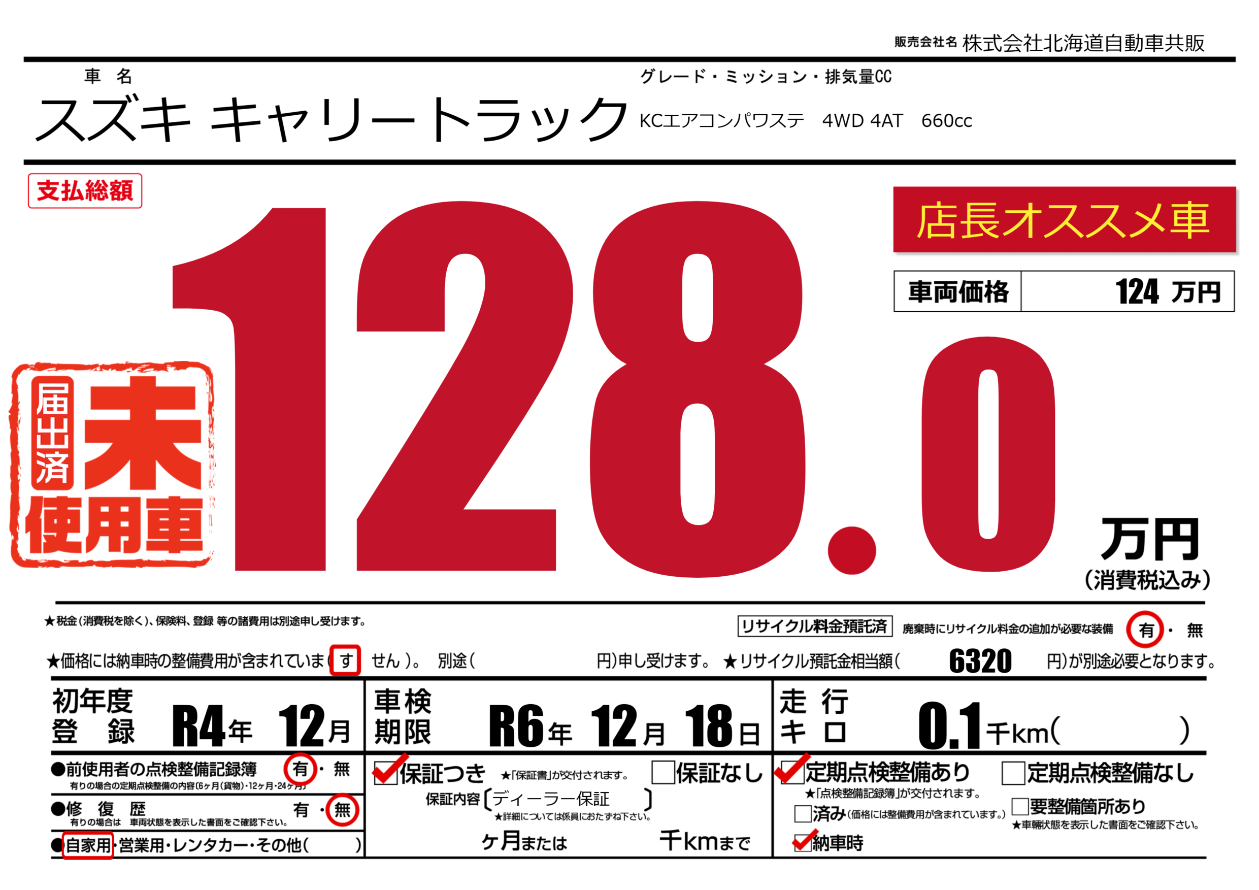 | 車検制限 | R6年 12月 18日 | ||