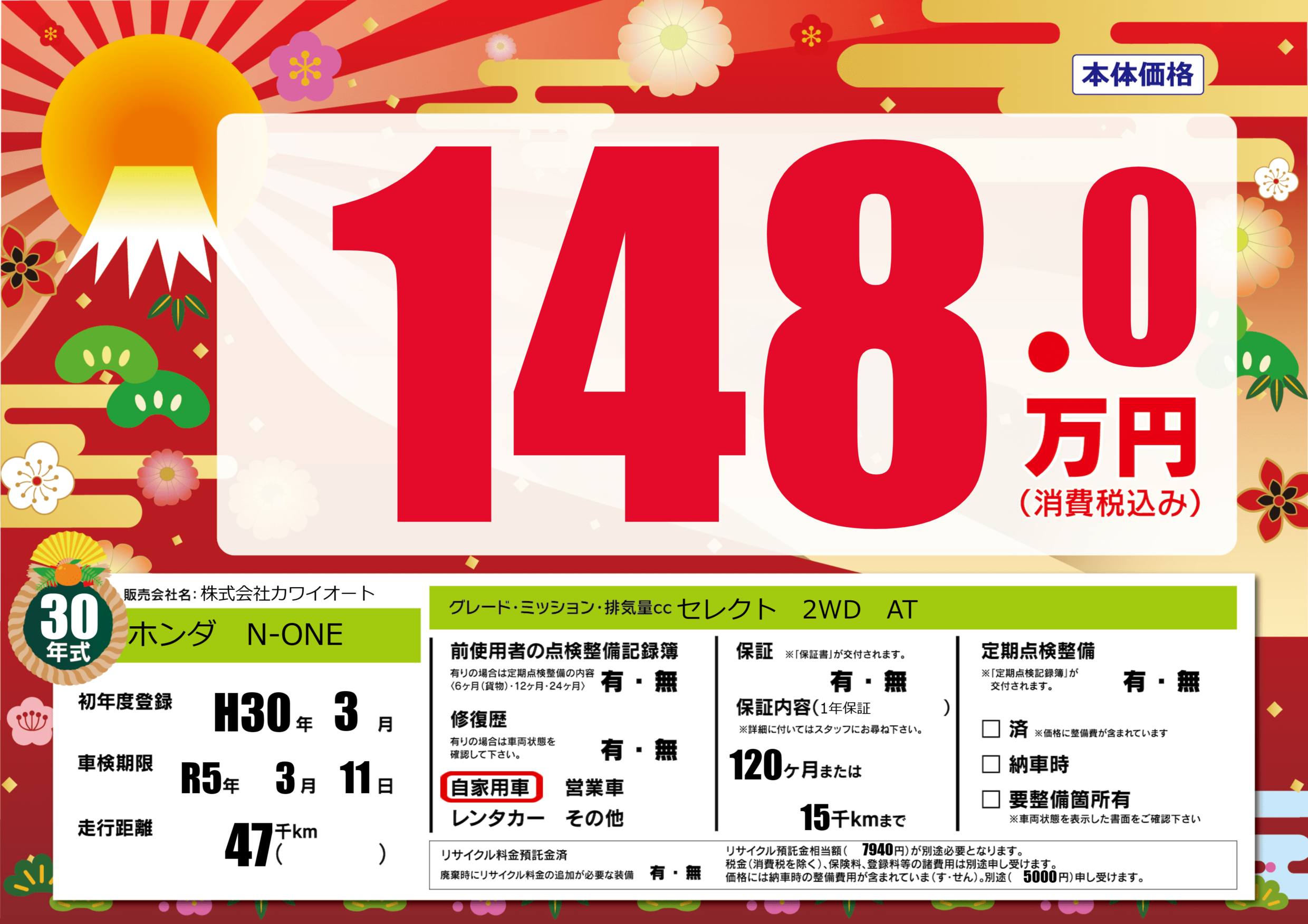 | 車名 | ホンダ N-ONE | グレード ミッション 排気量 |