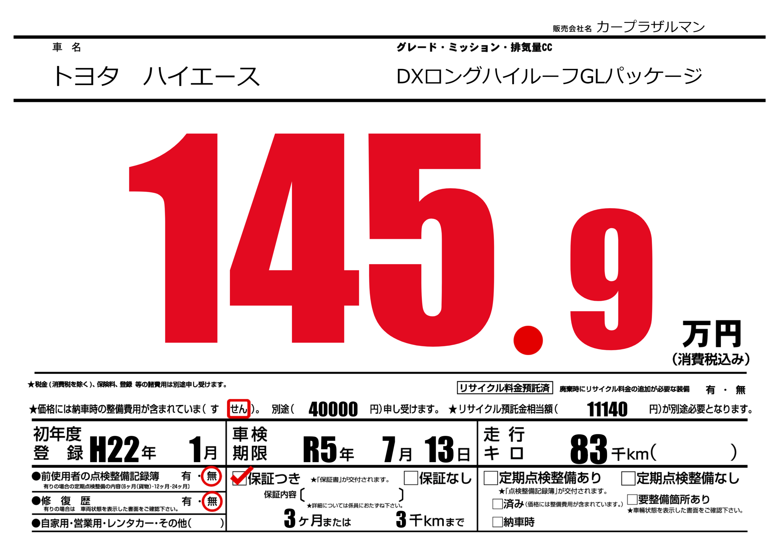 保証付き 保証内容(---) 3ヶ月または(3)千kmまで |