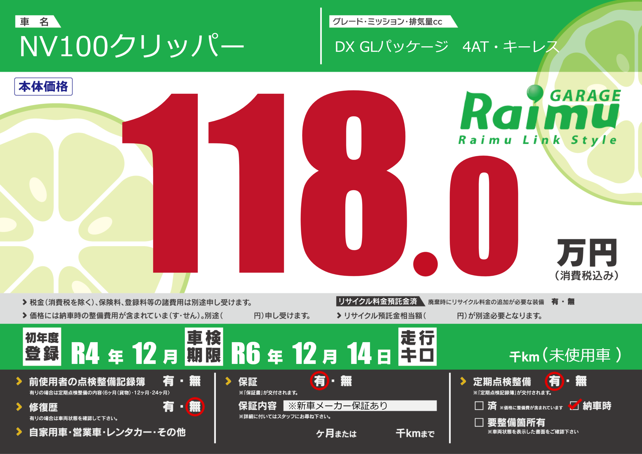なし | 車検制限 | R6年12月14月 |