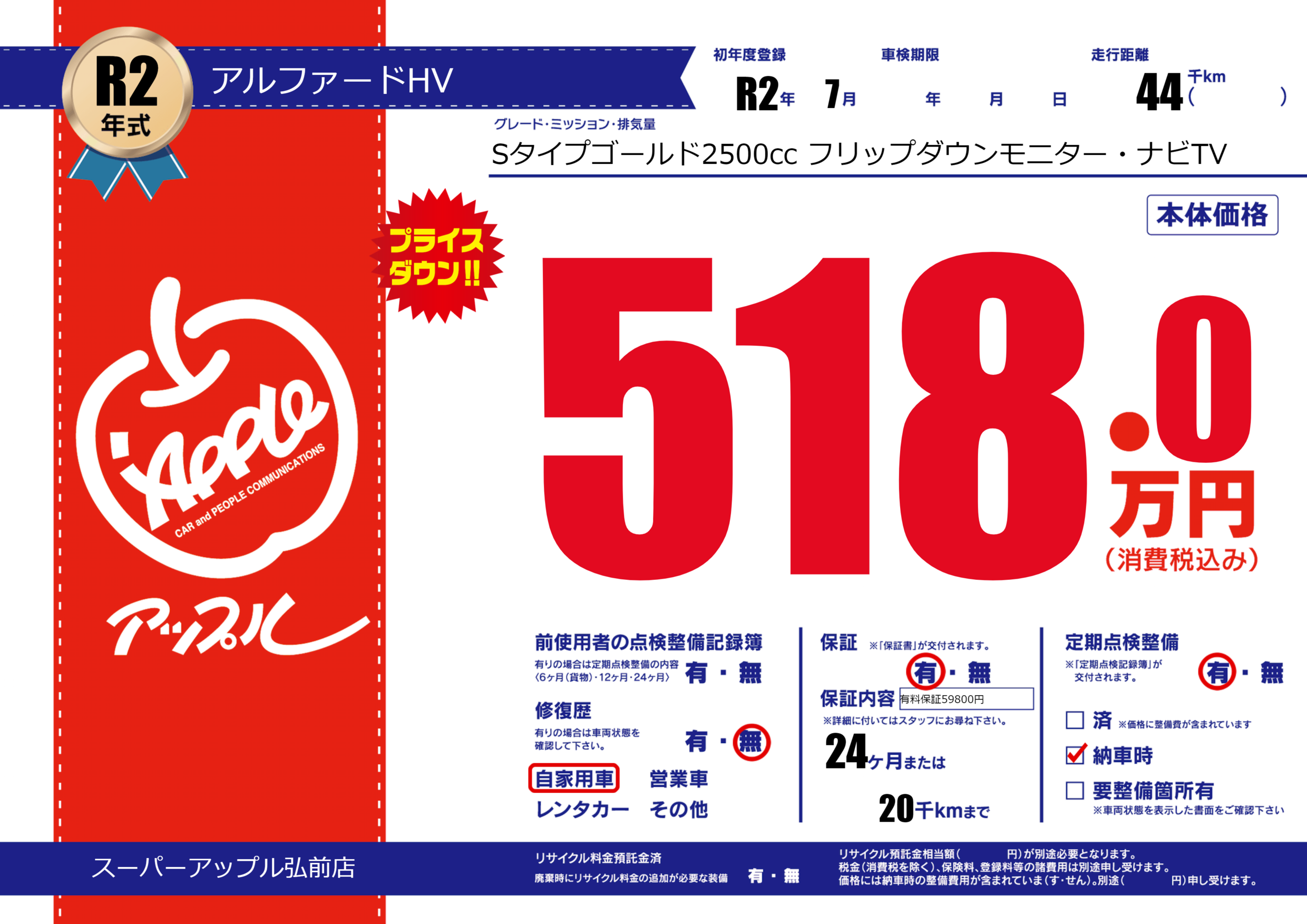 | 車名 | アルファードHV | グレード ミッション 排気量 |