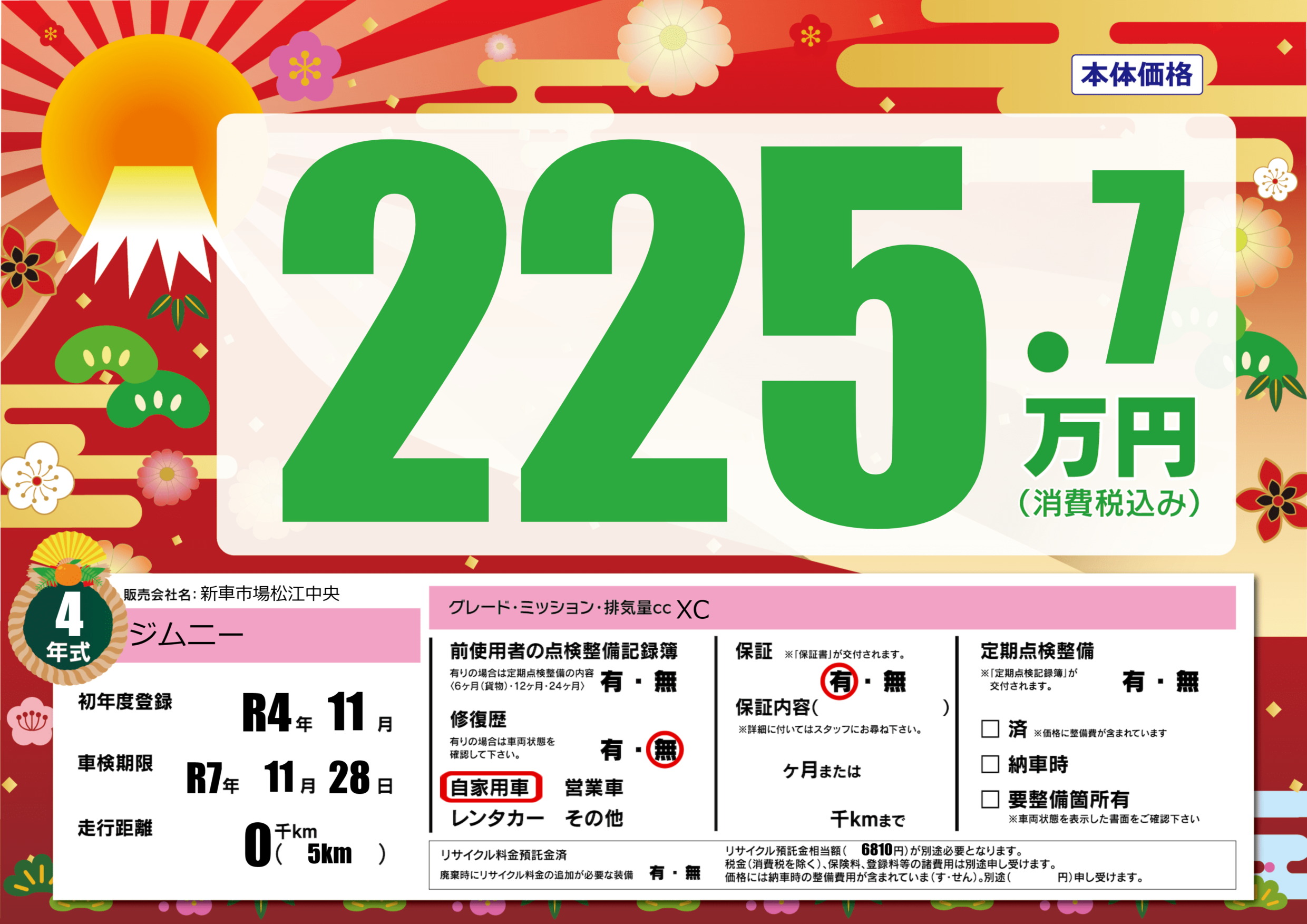 なし | 車検制限 | R7年11月28月 |