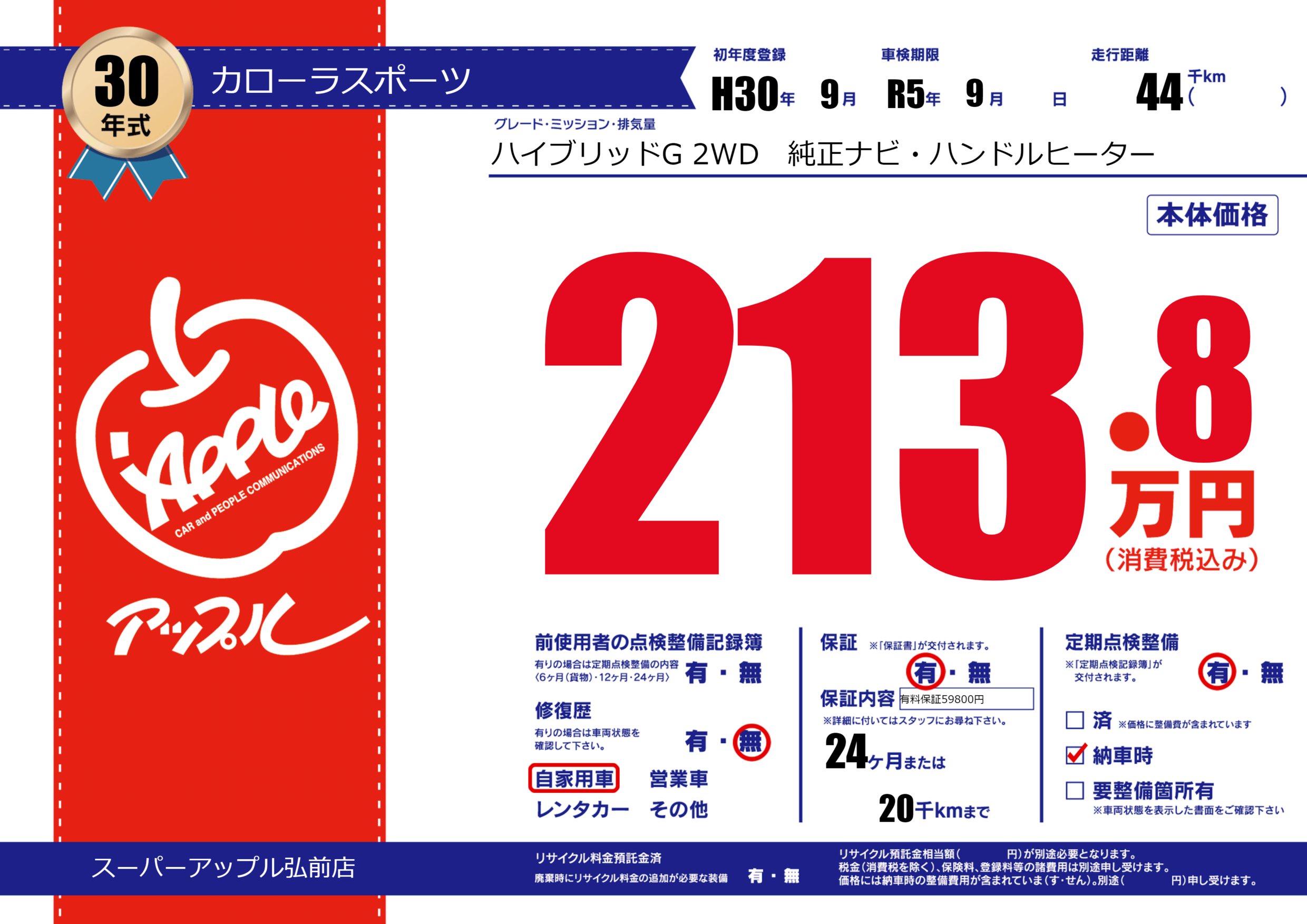 | 車名 | カローラスポーツ | グレード ミッション 排気量 |